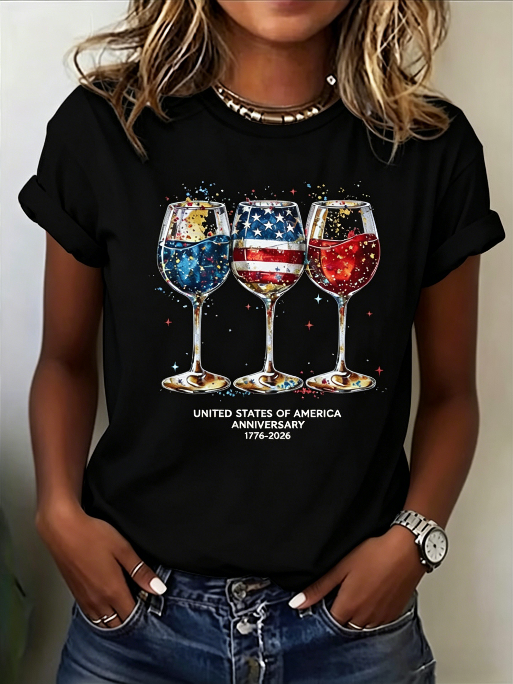 Independence Day Casual Cotton Crew Neck T-Shirt