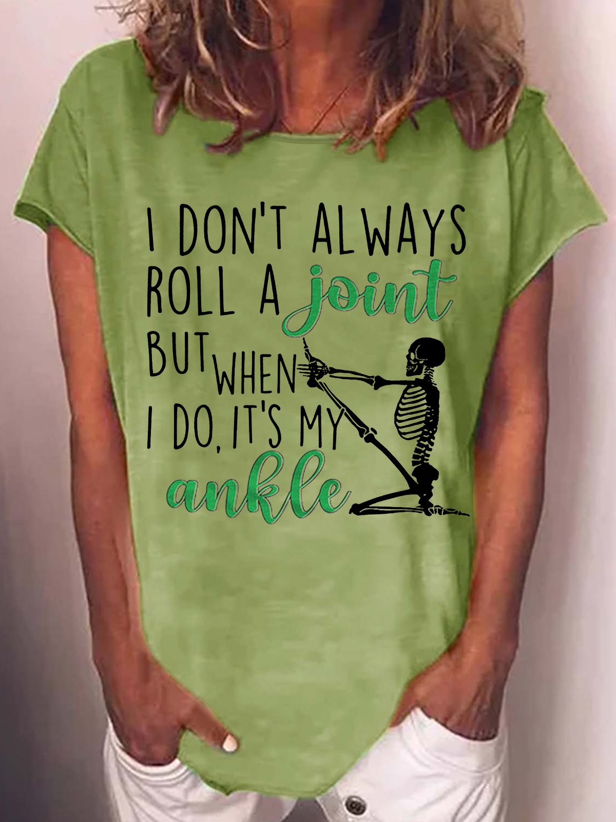 Women's I Don't Always Roll A Joint Skull Letters Casual Crew Neck T-Shirt