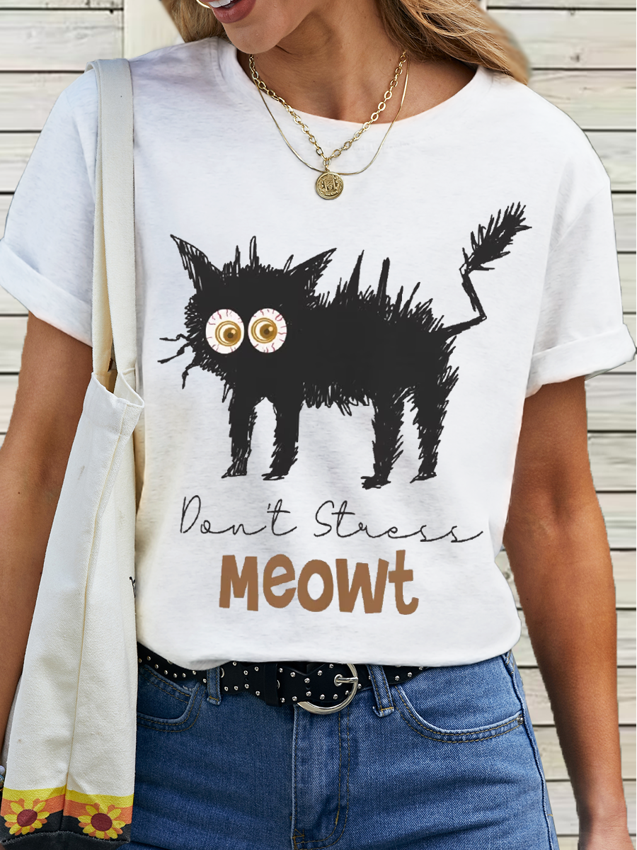 Women’s Cat Lover Don't Stress Cotton Simple Text Letters T-Shirt