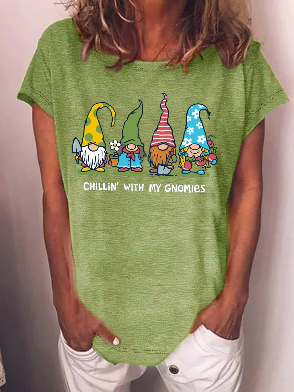 Women's Garden Gnomies Print Casual Loose T-Shirt