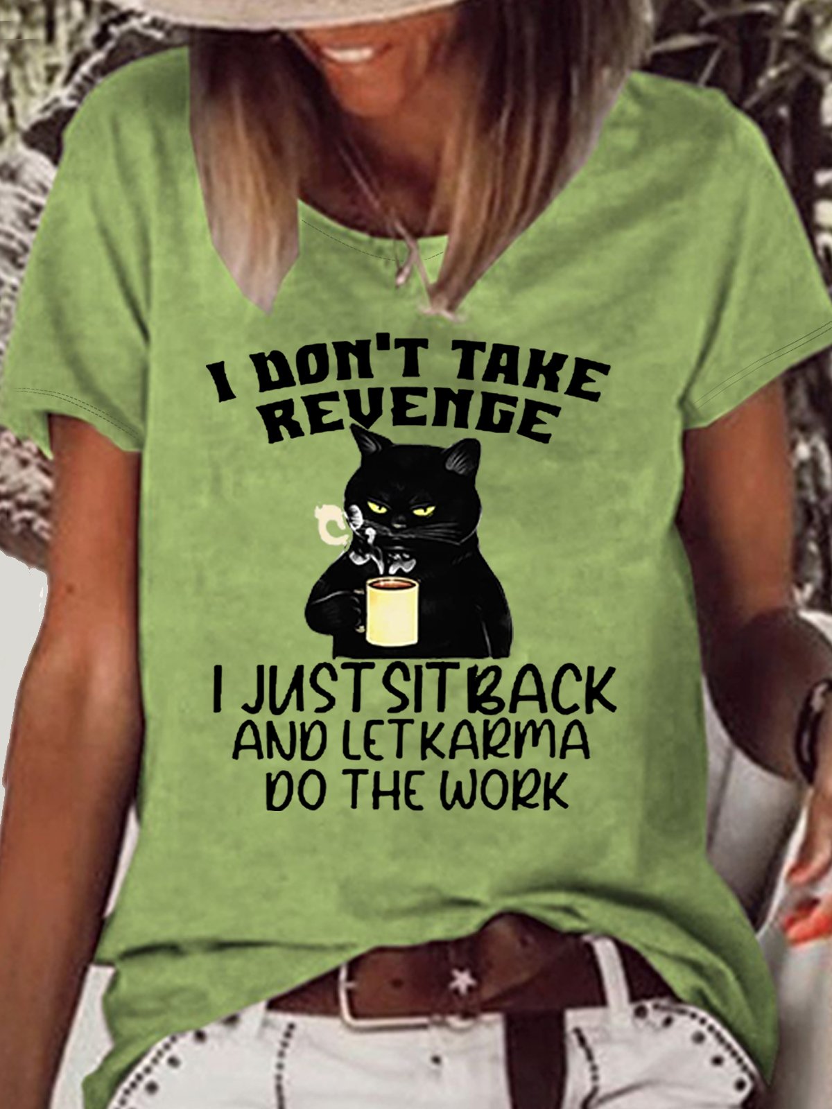 Women's I Don't Take Revenge I Just Sit Back And Let Karma Casual Letters T-Shirt
