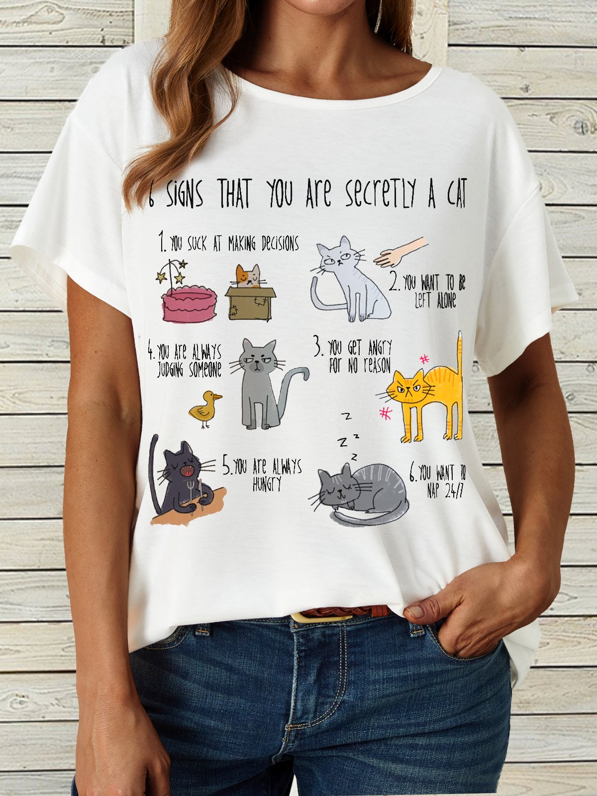 Women's Six signs that you are secretly a cat crazy cat lady Letters Casual T-Shirt