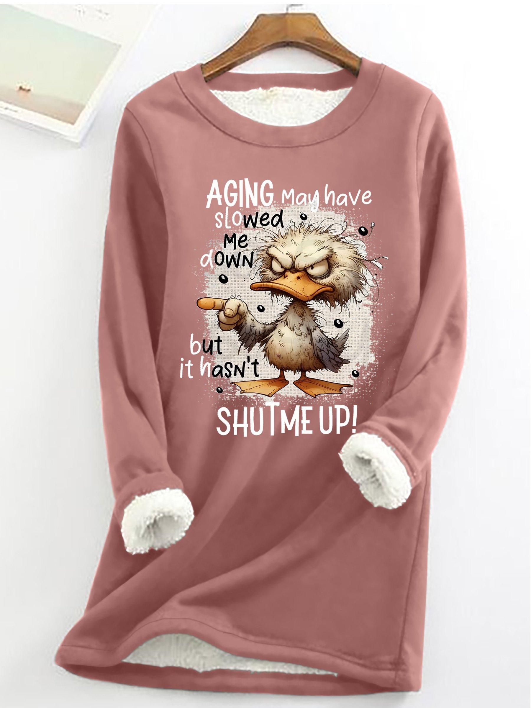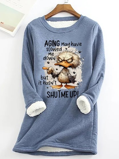 Aging May Have Slowed Me Down Silly Duck Angry Bird Sarcastic Quote Casual Fluff Fleece Fabric Sweatshirt