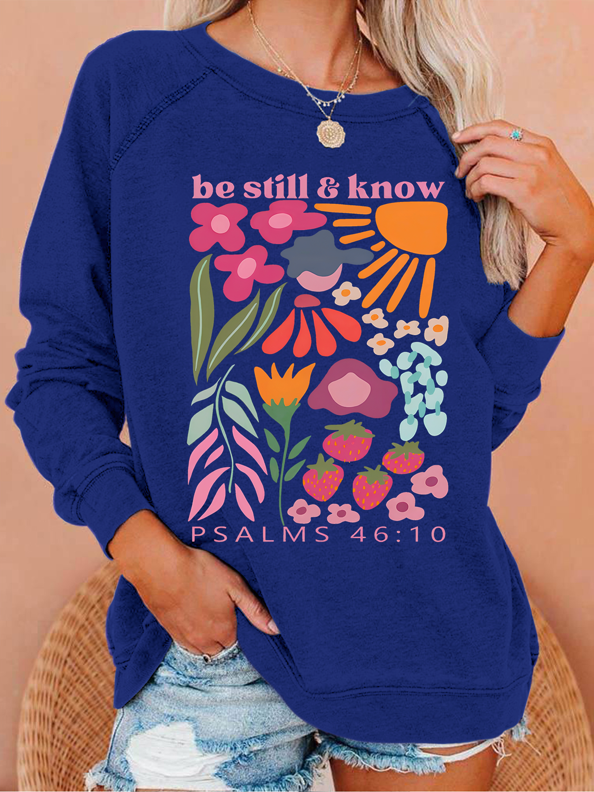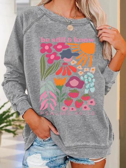 Be Still And Know Christian Washed T-Shirt Crew Neck Casual Sweatshirt