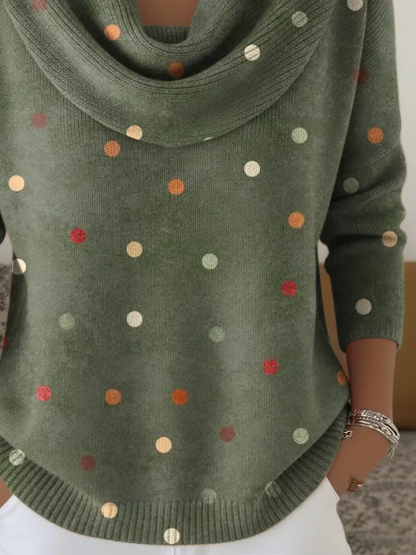 Casual Cowl Neck Regular Fit Polka Dots Sweater