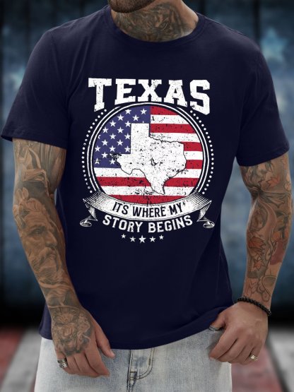 Men's Texas It'S Where My Story Being Graphic Printing Casual Loose Text Letters Cotton T-Shirt