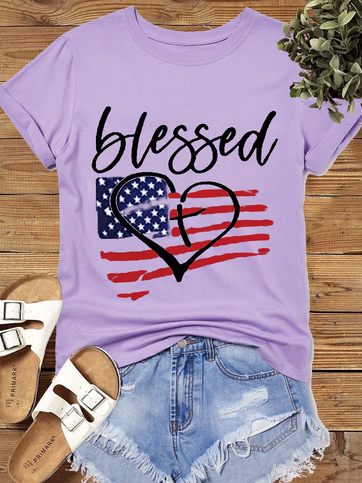 Women‘s Cotton American Flag Cute July 4th Independence Day Patriotic Casual Letters T-Shirt