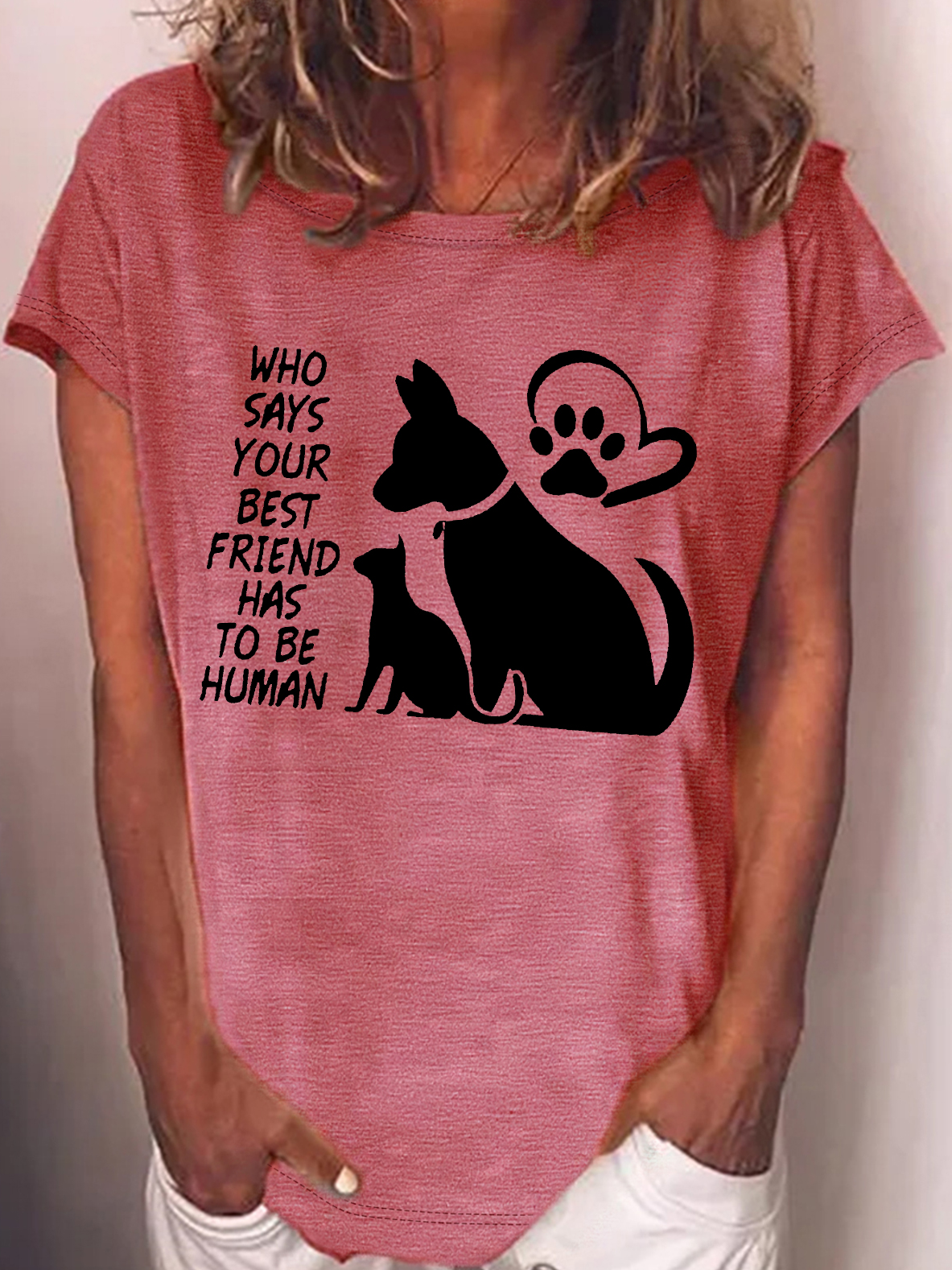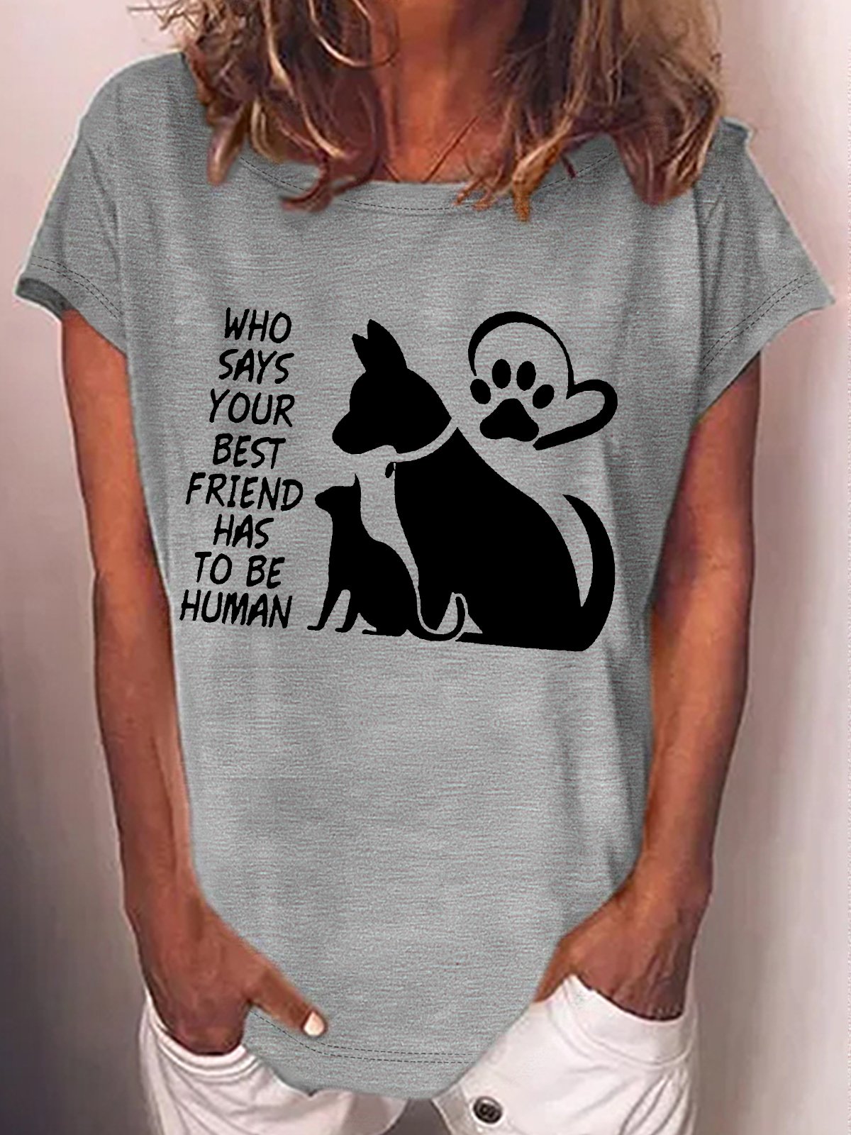 Women's Who Says Your Best Friend Has To Be Human Crew Neck Text Letters Casual T-Shirt