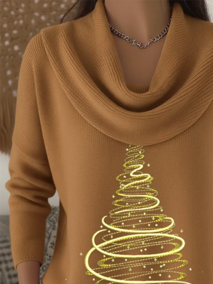 Christmas Cowl Neck Casual Printing Sweater