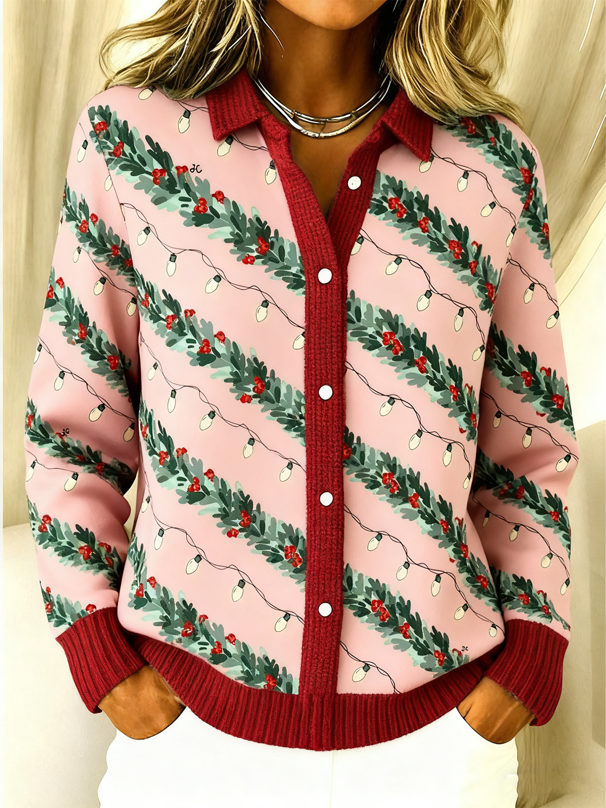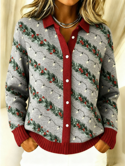 Christmas Knitted Shawl Collar Casual Cardigan