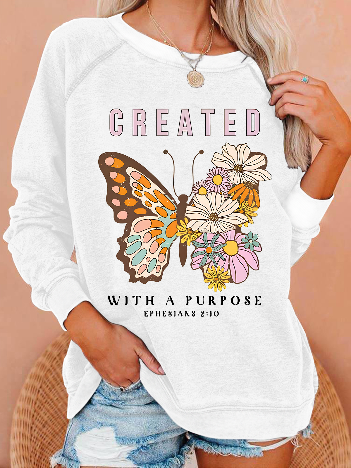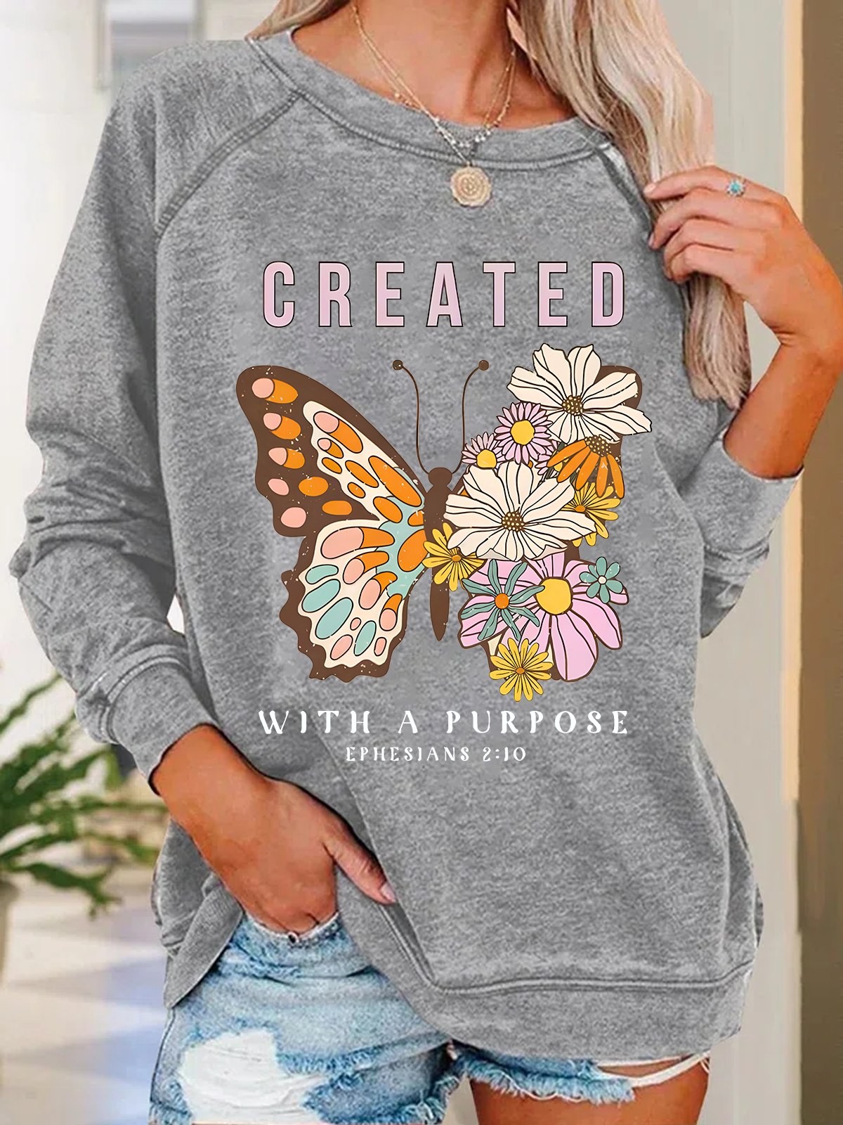 Created With Purpose Christian Casual Text Letters Sweatshirt