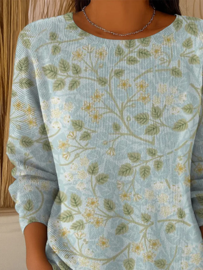 Crew Neck Simple Floral Printing Sweater