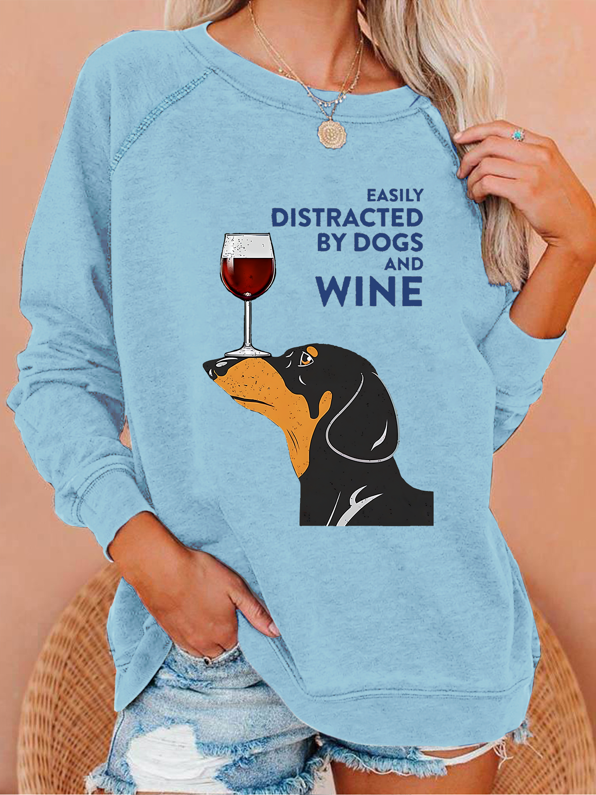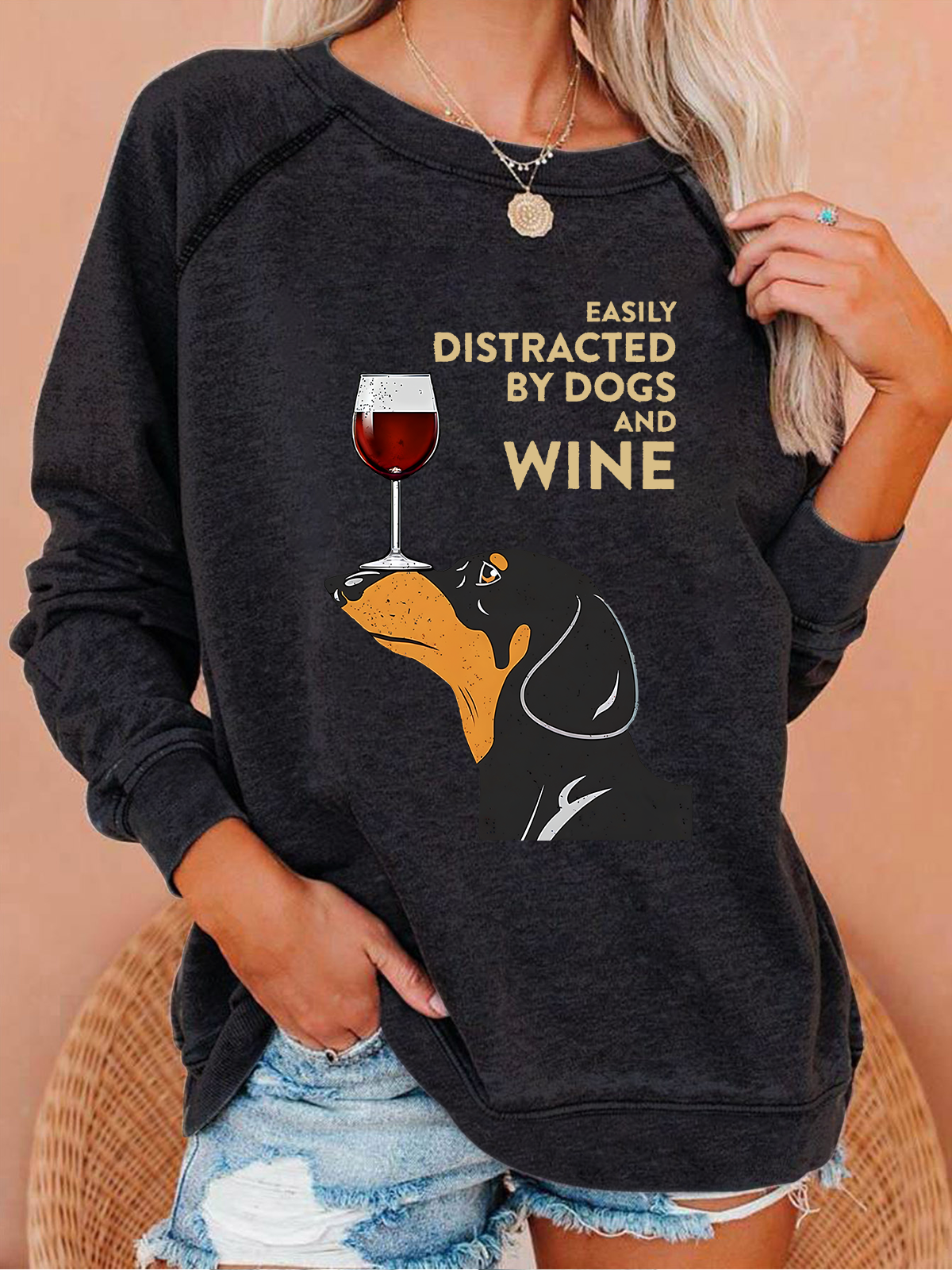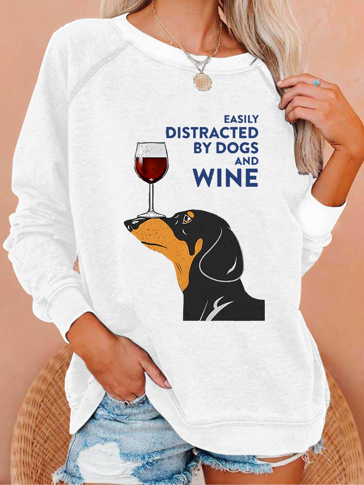 EASILY DISTRACTED Crew Neck Casual Text Letters Sweatshirt