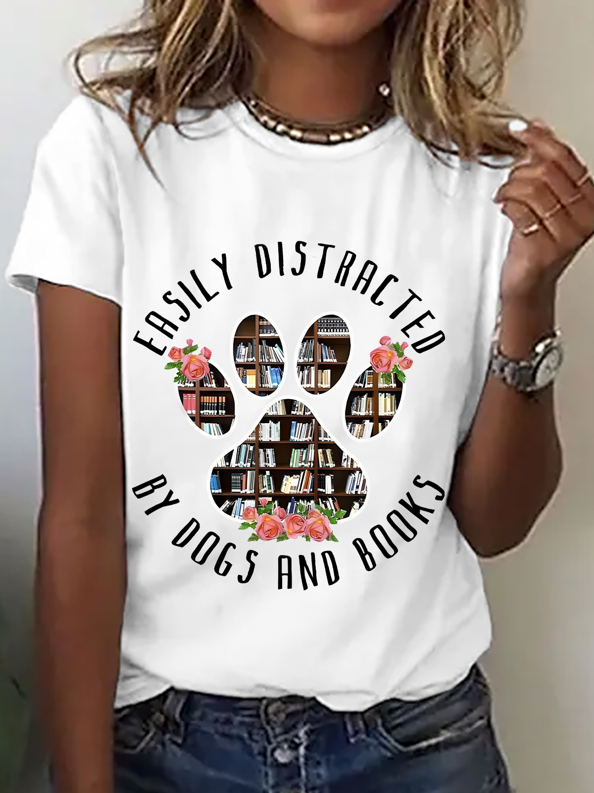 Easily Distracted Dogs And Books Cotton T-Shirt