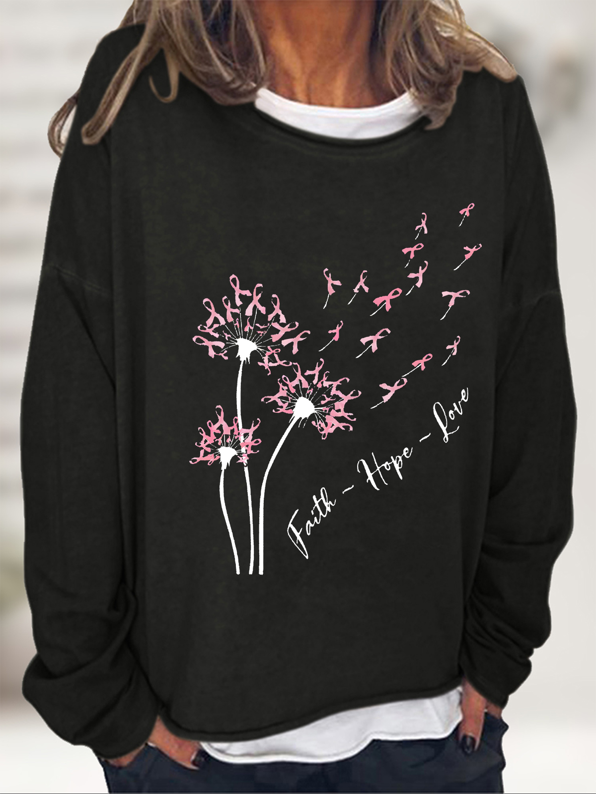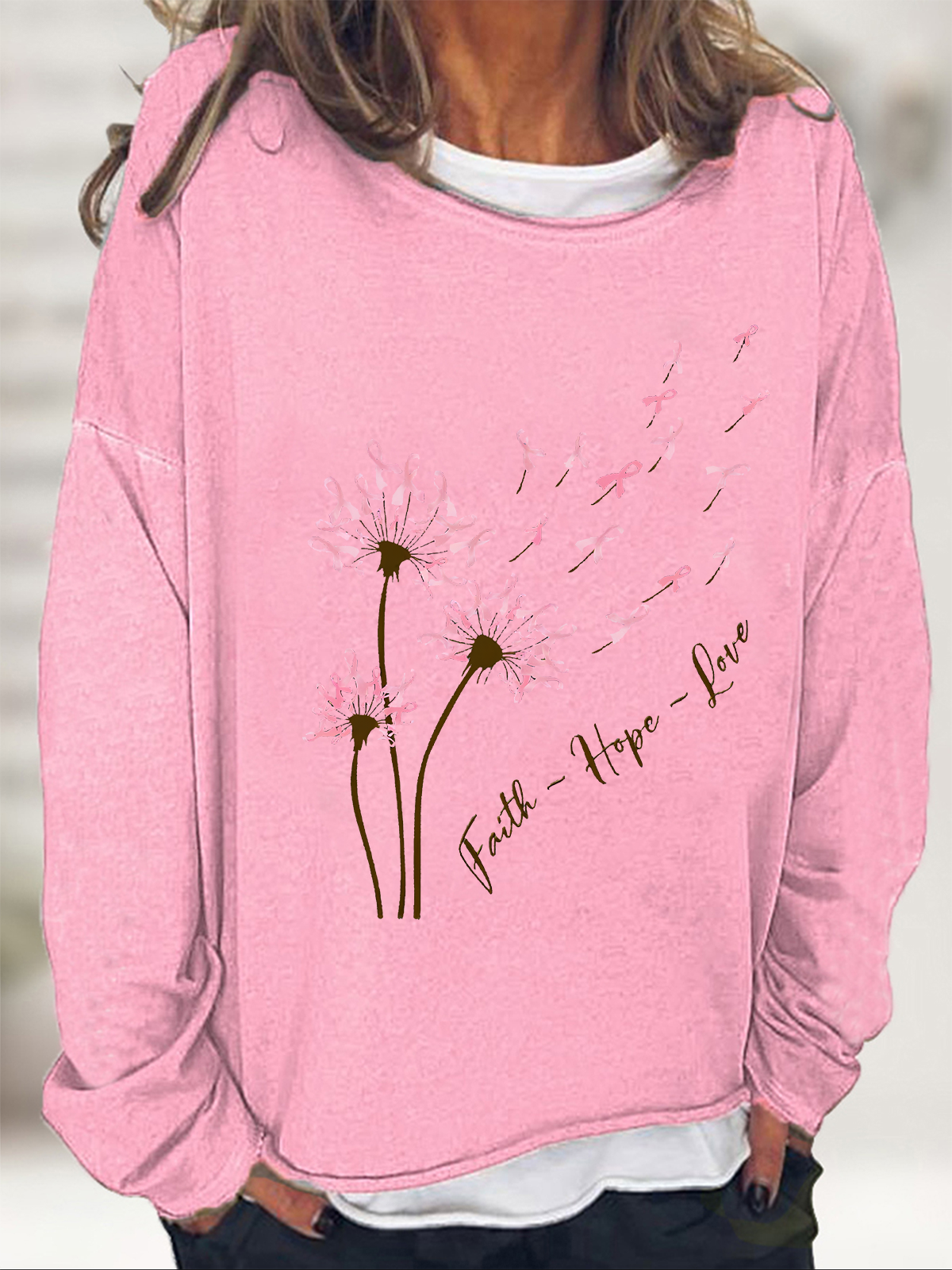 Faith Hope Love Dandelion Pink Ribbon Dandelion Casual Sweatshirt