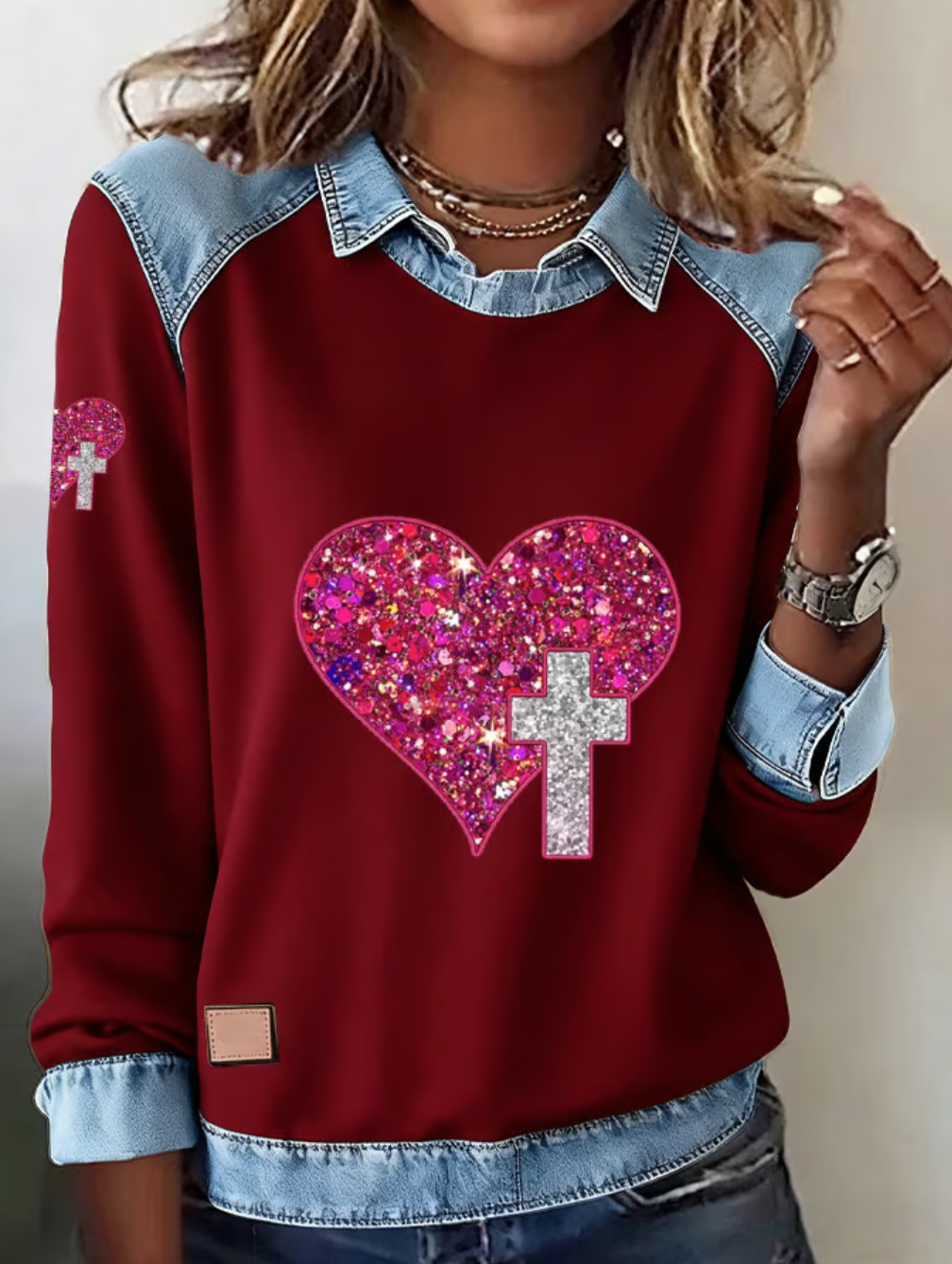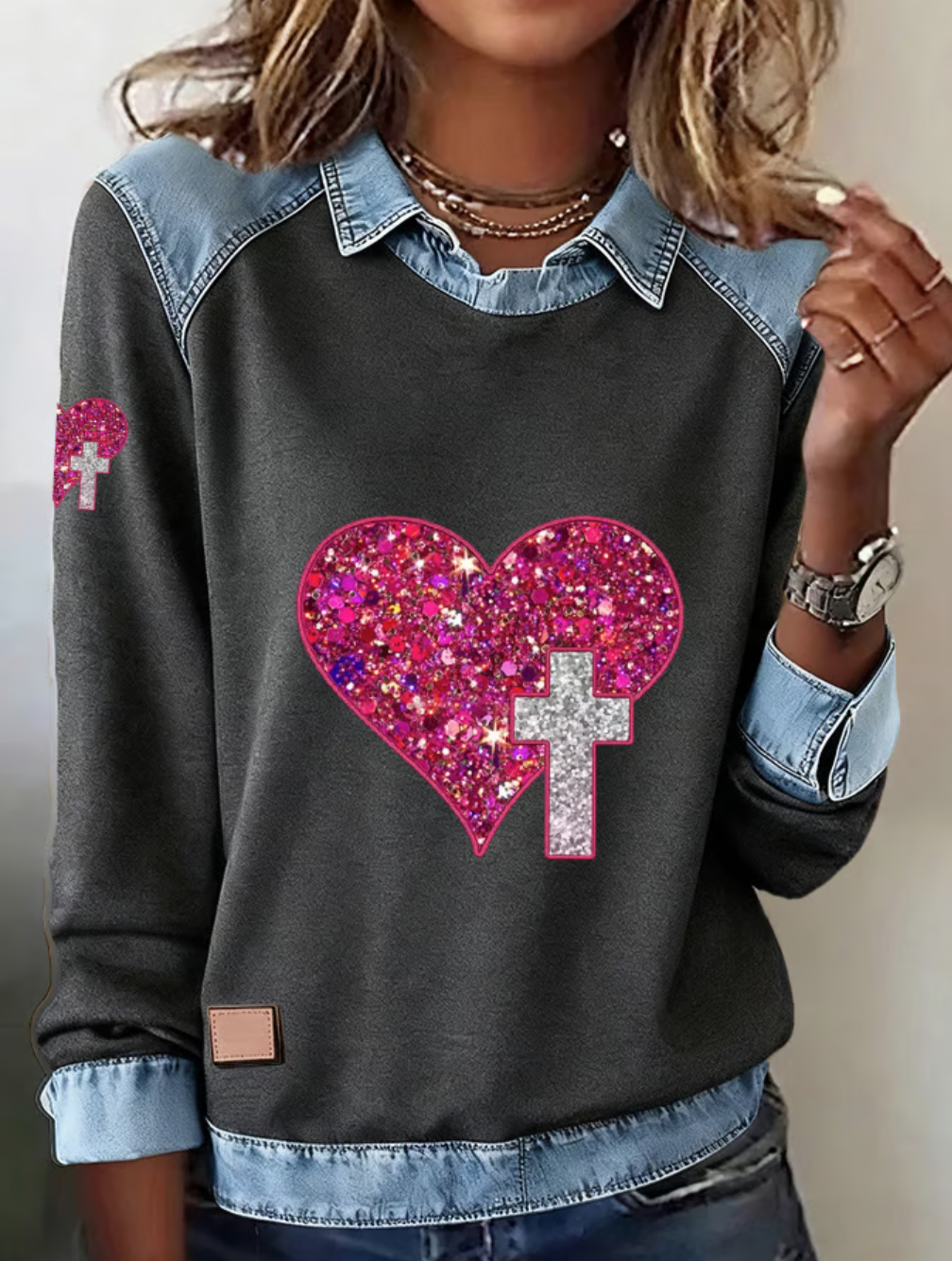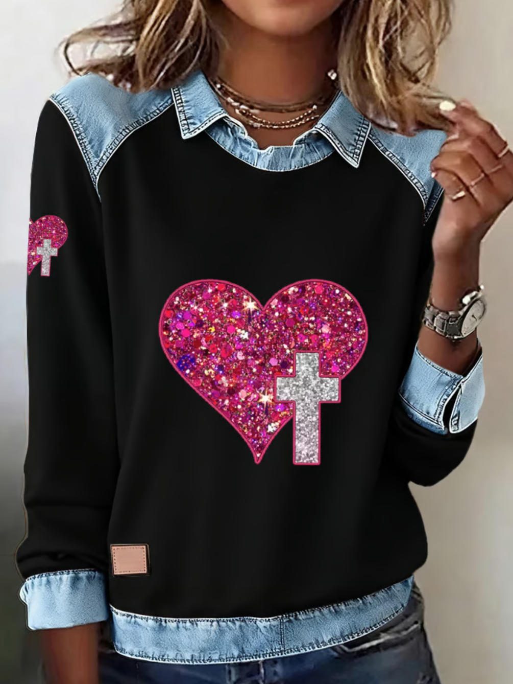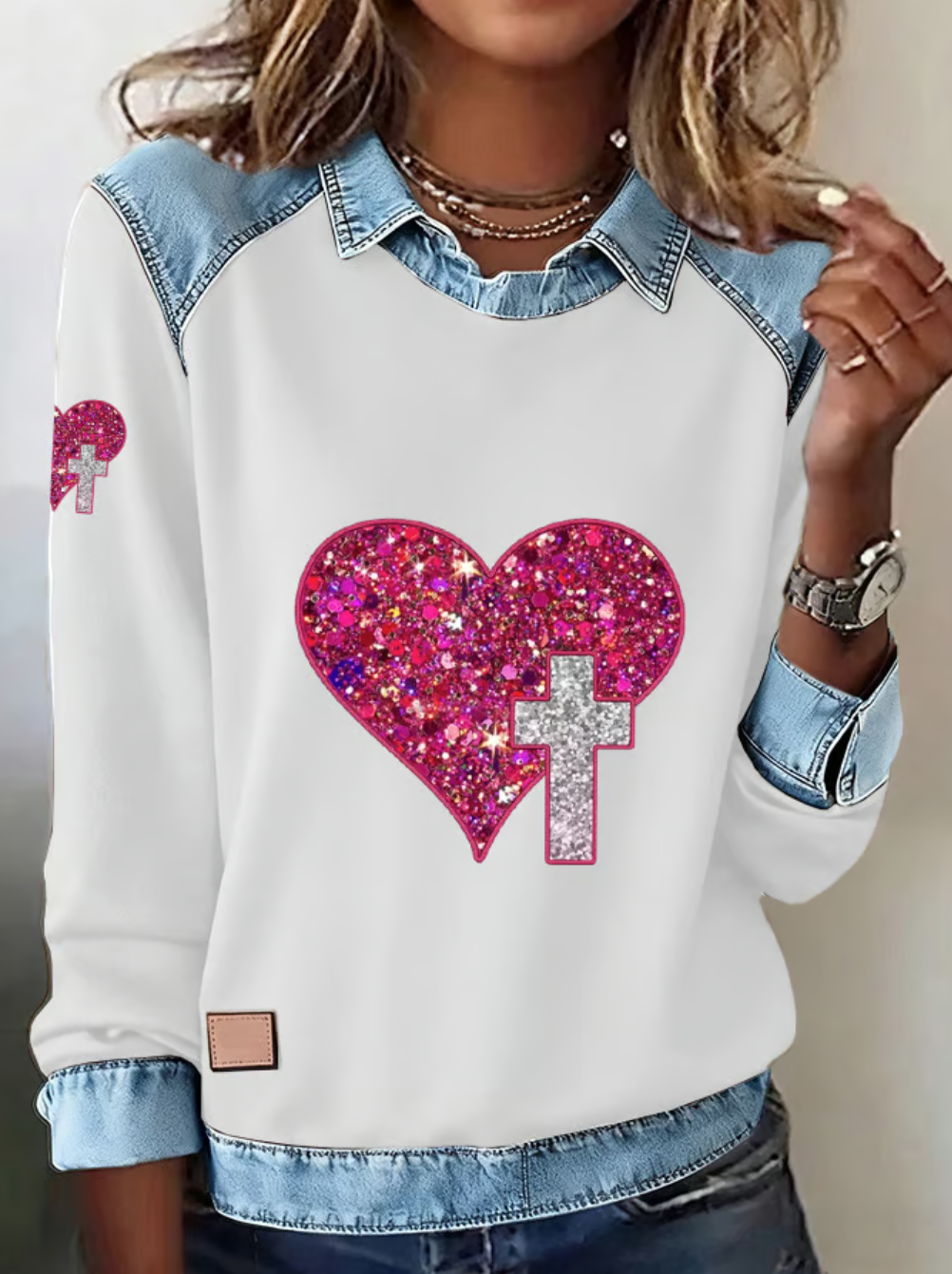 Faith Sequin Love Cross Print Women's Sweatshirt