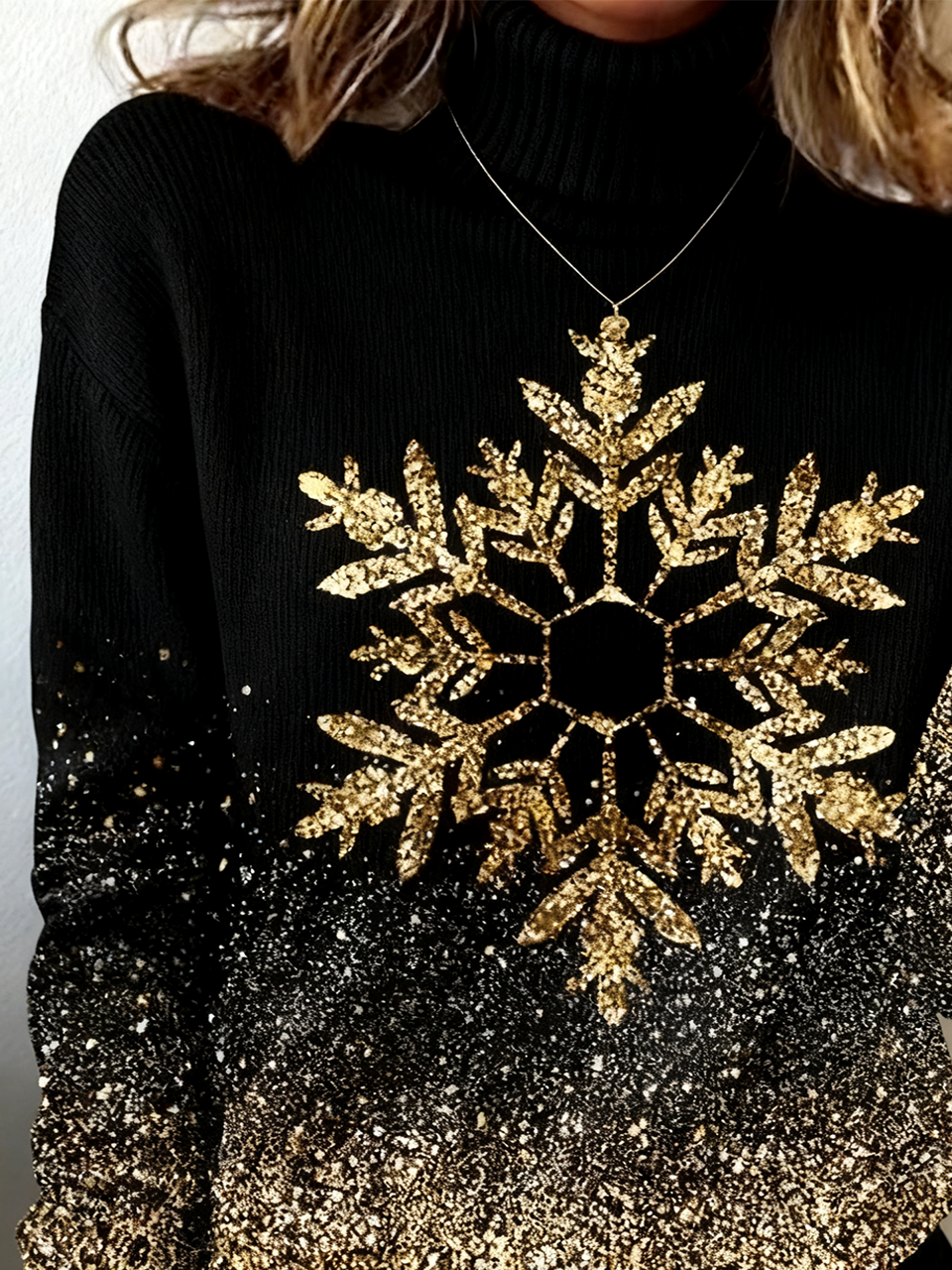 Gradient Pattern Vintage Loose Turtleneck Sweater