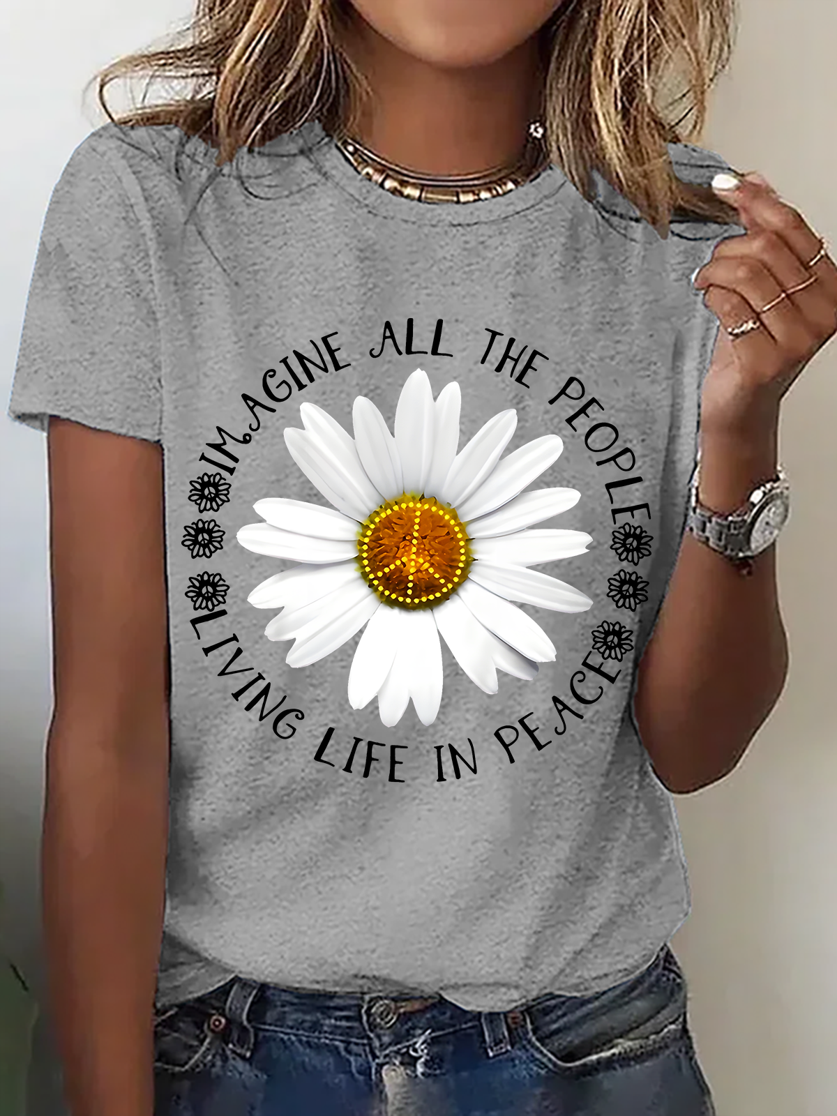 Imagine All The People Living Life In Peace Cotton T-Shirt