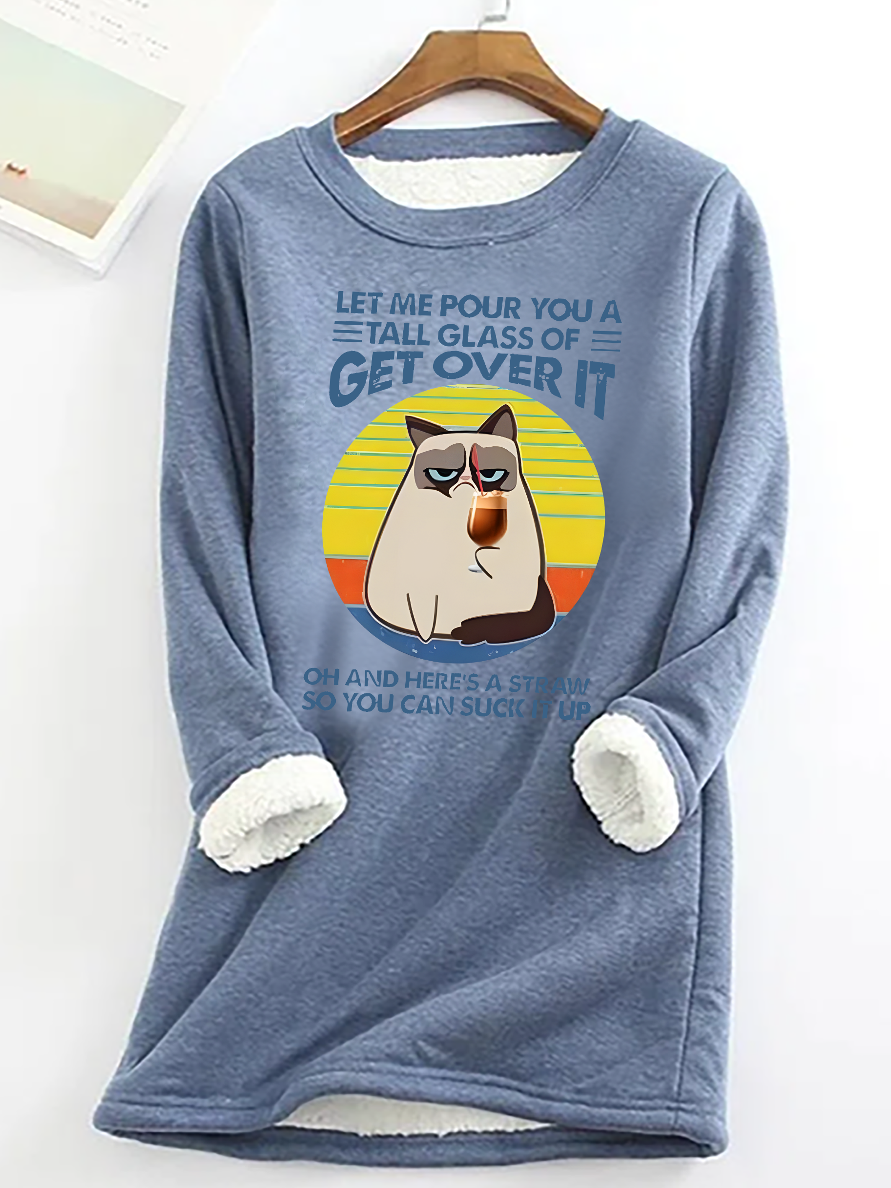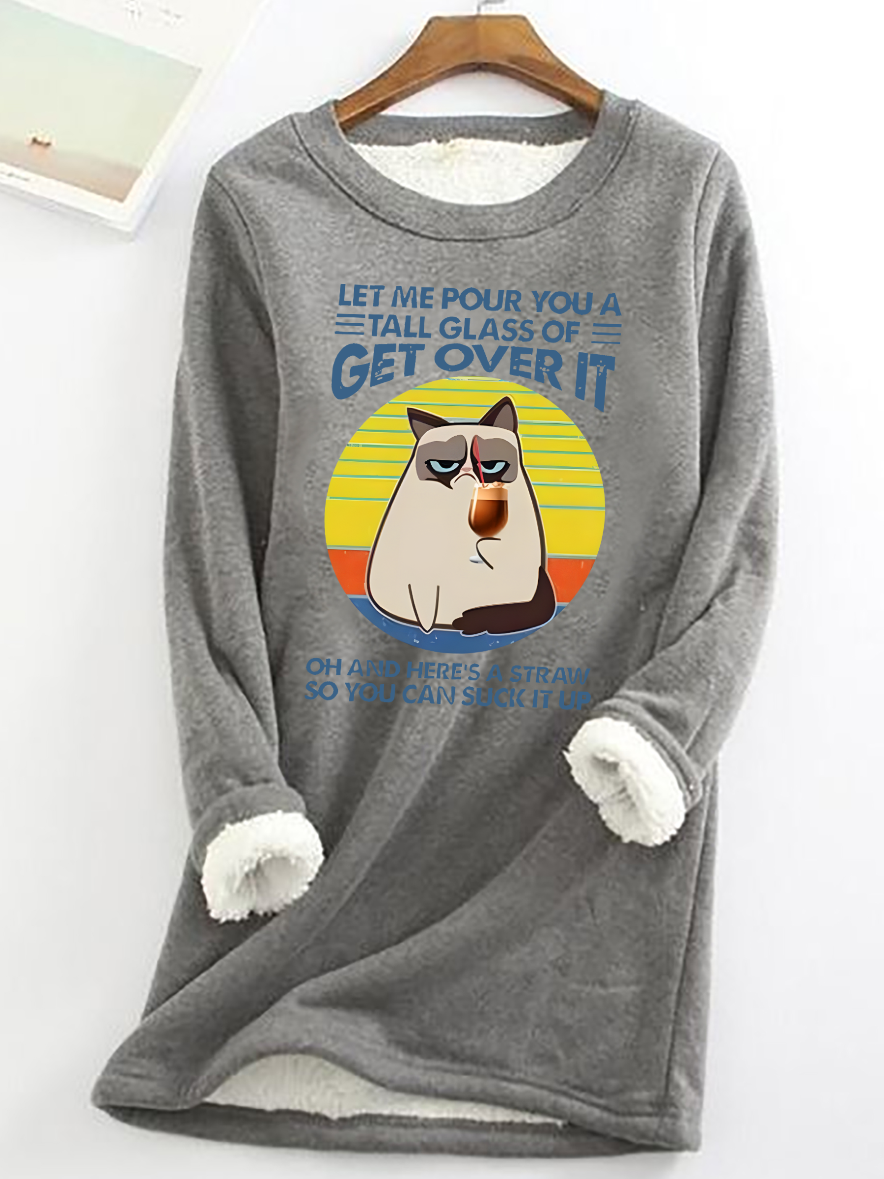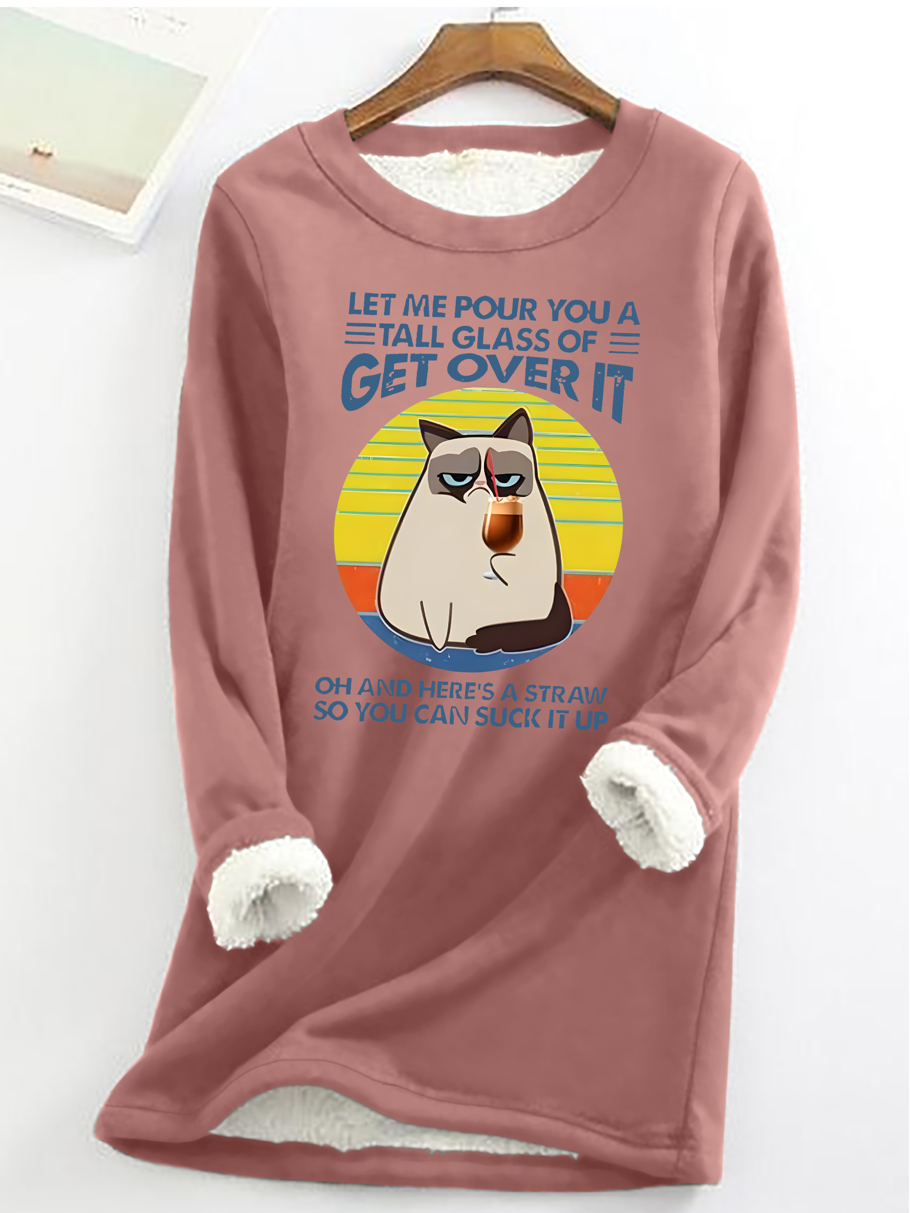 Let Me Pour You A Tall Glass Of = Get Over It Oh And Here's A Straw So You Can Sucik It Up Casual Fluff Fleece Fabric Sweatshirt