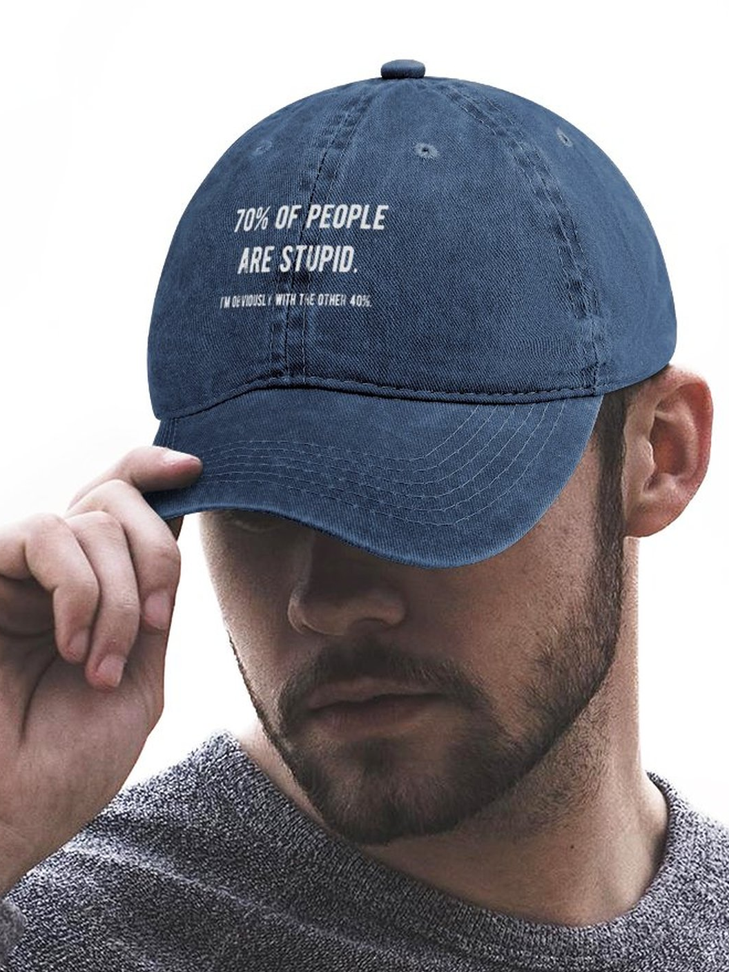 Men's Funny 70% Of People Are Stupid I'm Obviously The Other 40% Adjustable Denim Hat