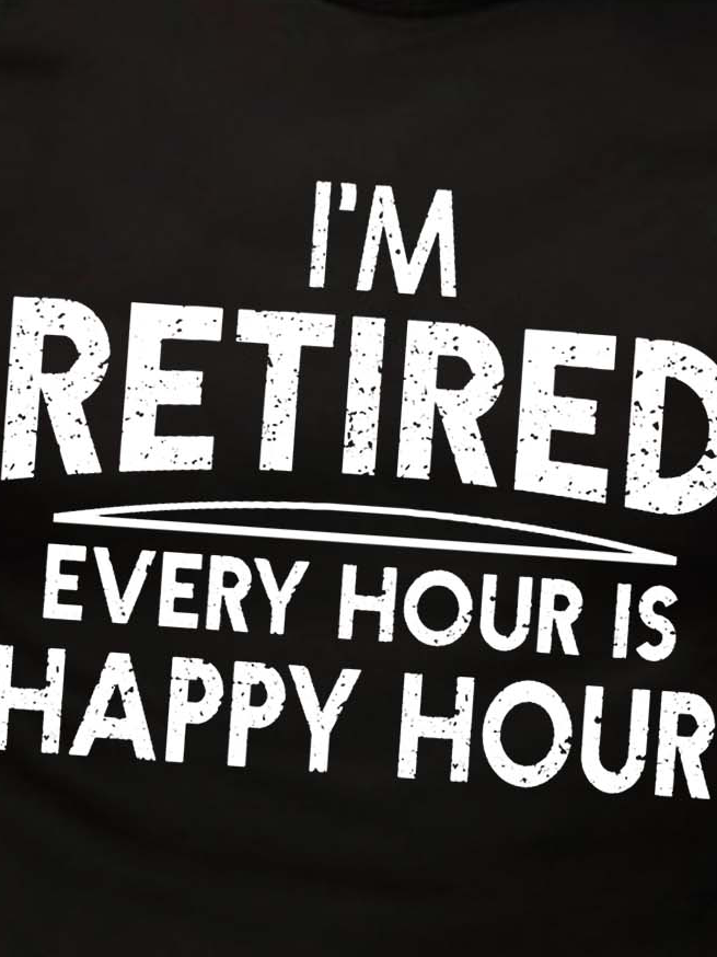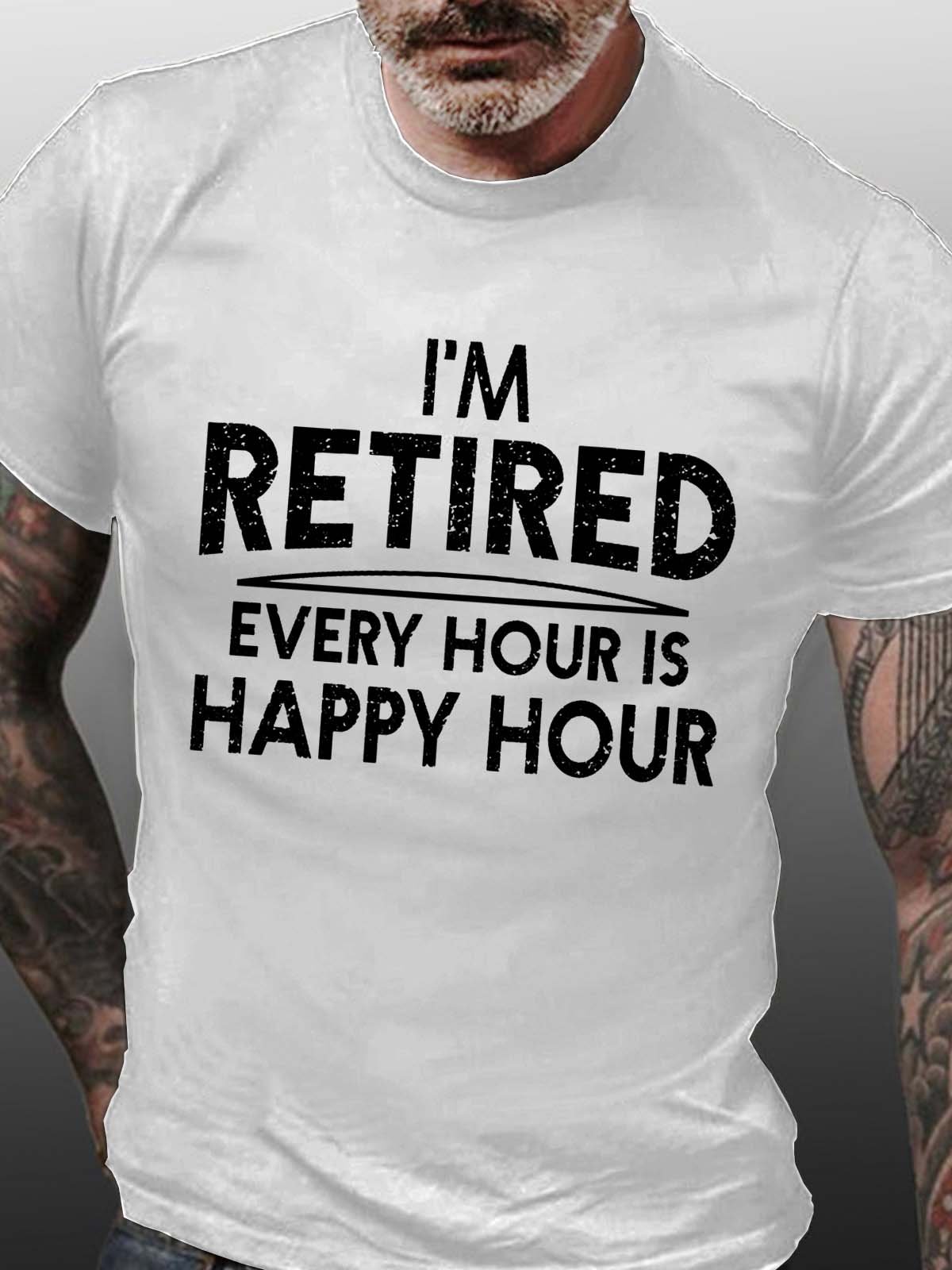 Men Retired Happy Hour Letters Fit Casual Cotton T-Shirt