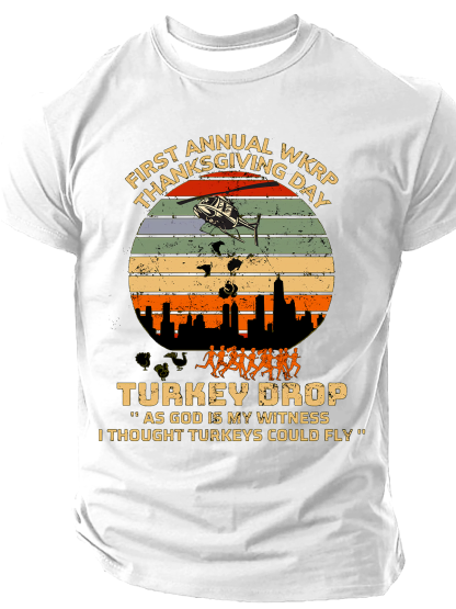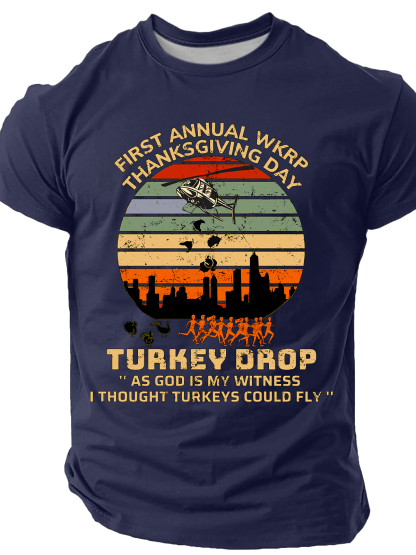 Men's As God Is My Witness I Thought Turkeys Could Fly Thanksgiving Turkey Funny Short Sleeve T-shirt