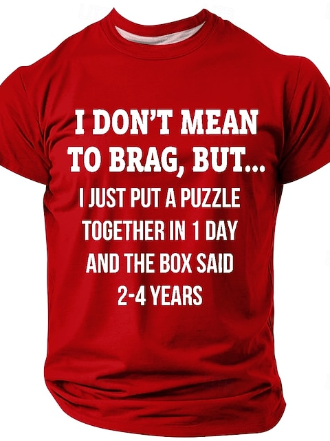Men's I Don't Mean To Brag, But I Put A Puzzle Together In 1 Day & The Box Said 2-4 Years Sarcastic T-shirt