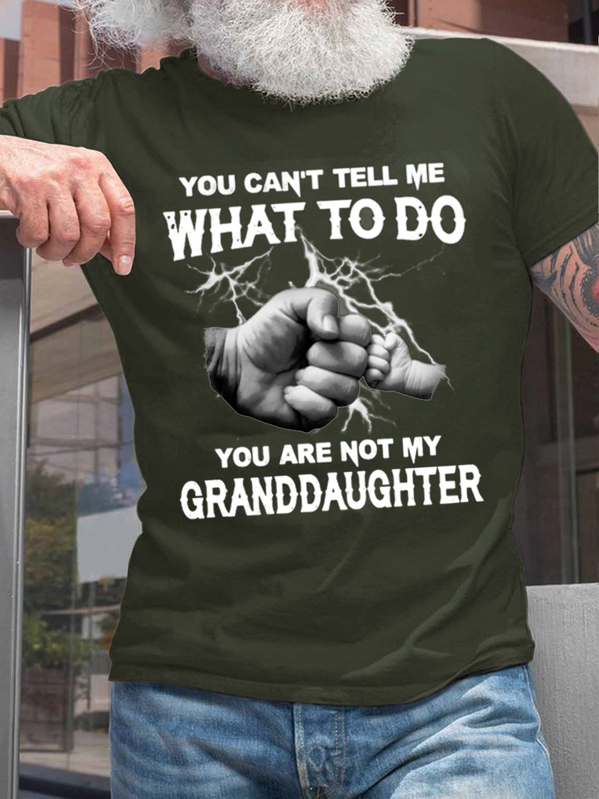 Men's My Granddaughter Crew Neck Casual Loose Text Letters Cotton T-Shirt