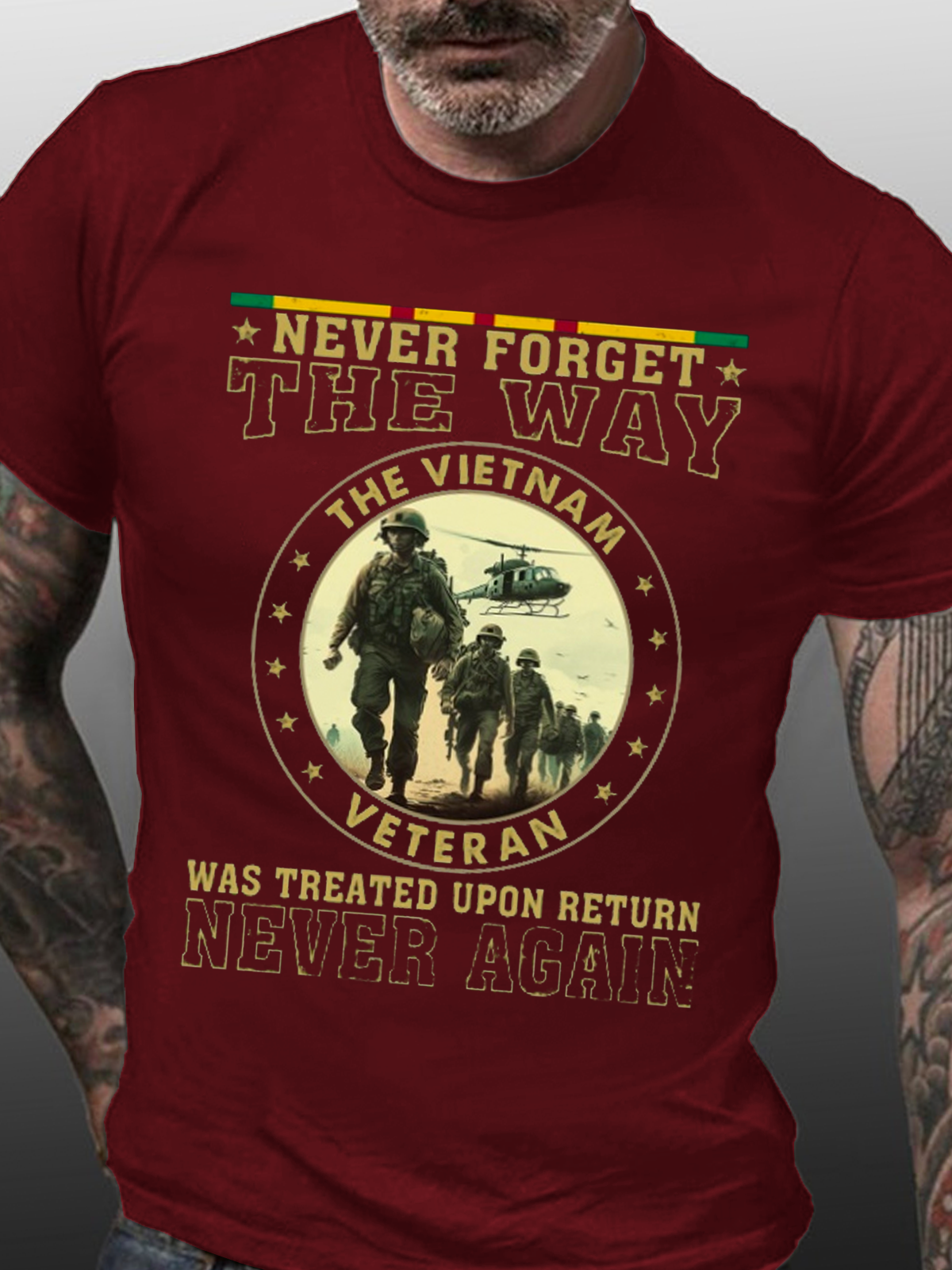 Men's Never Forget the Way The Vietnam Veteran Was Treated - Perfect Gift For Vietnam Veteran Casual Cotton Crew Neck Loose T-Shirt