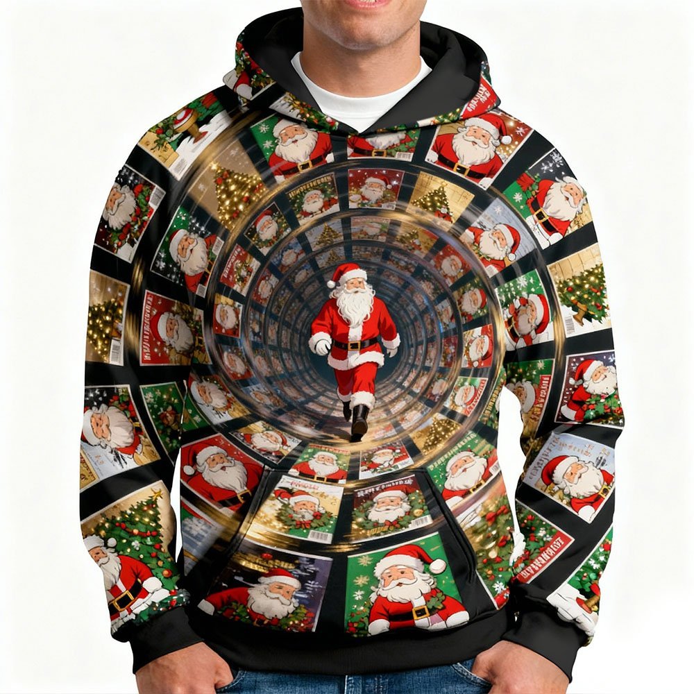 Men's Santa Claus Spiral Geometric Print Hoodie
