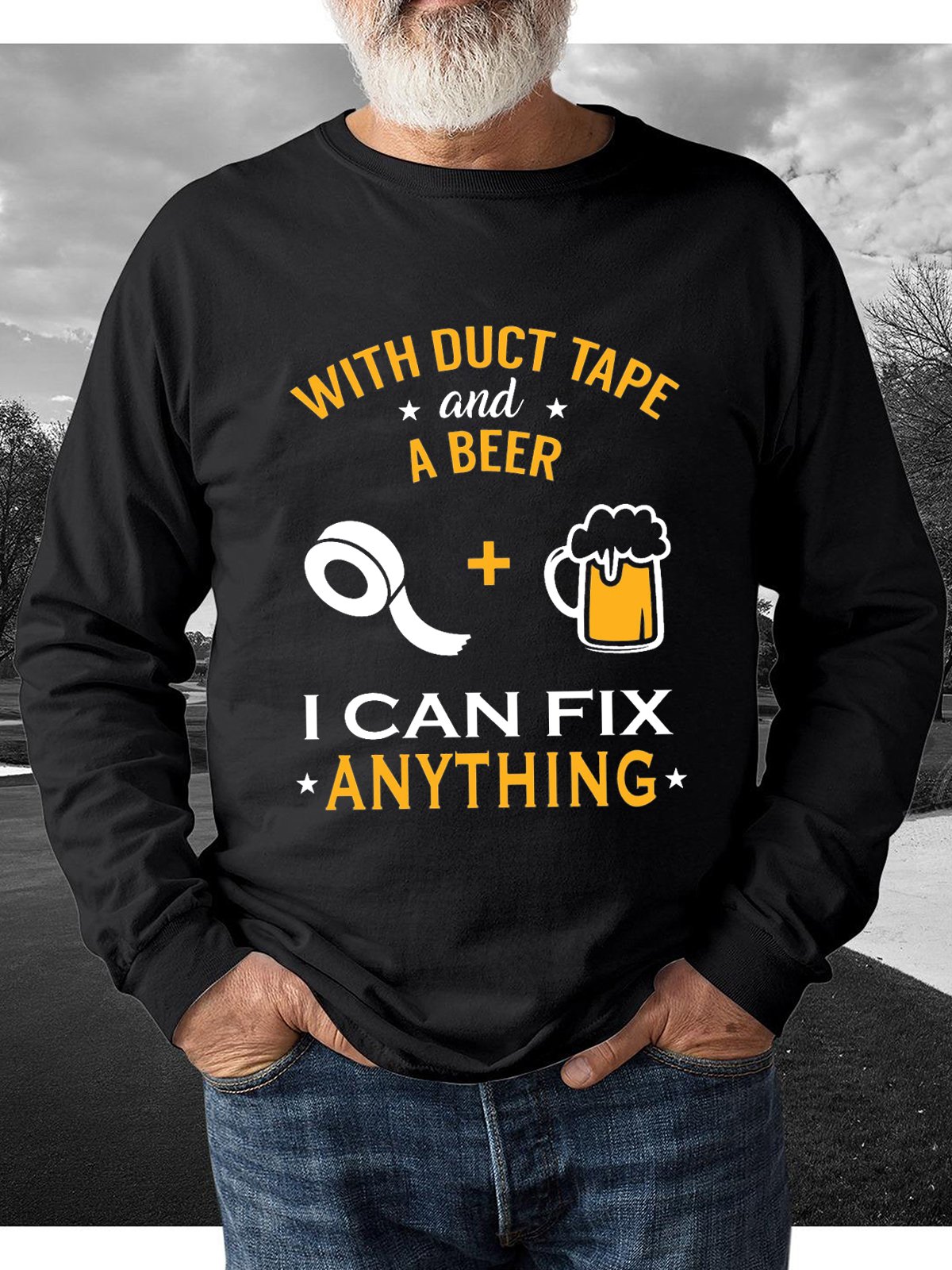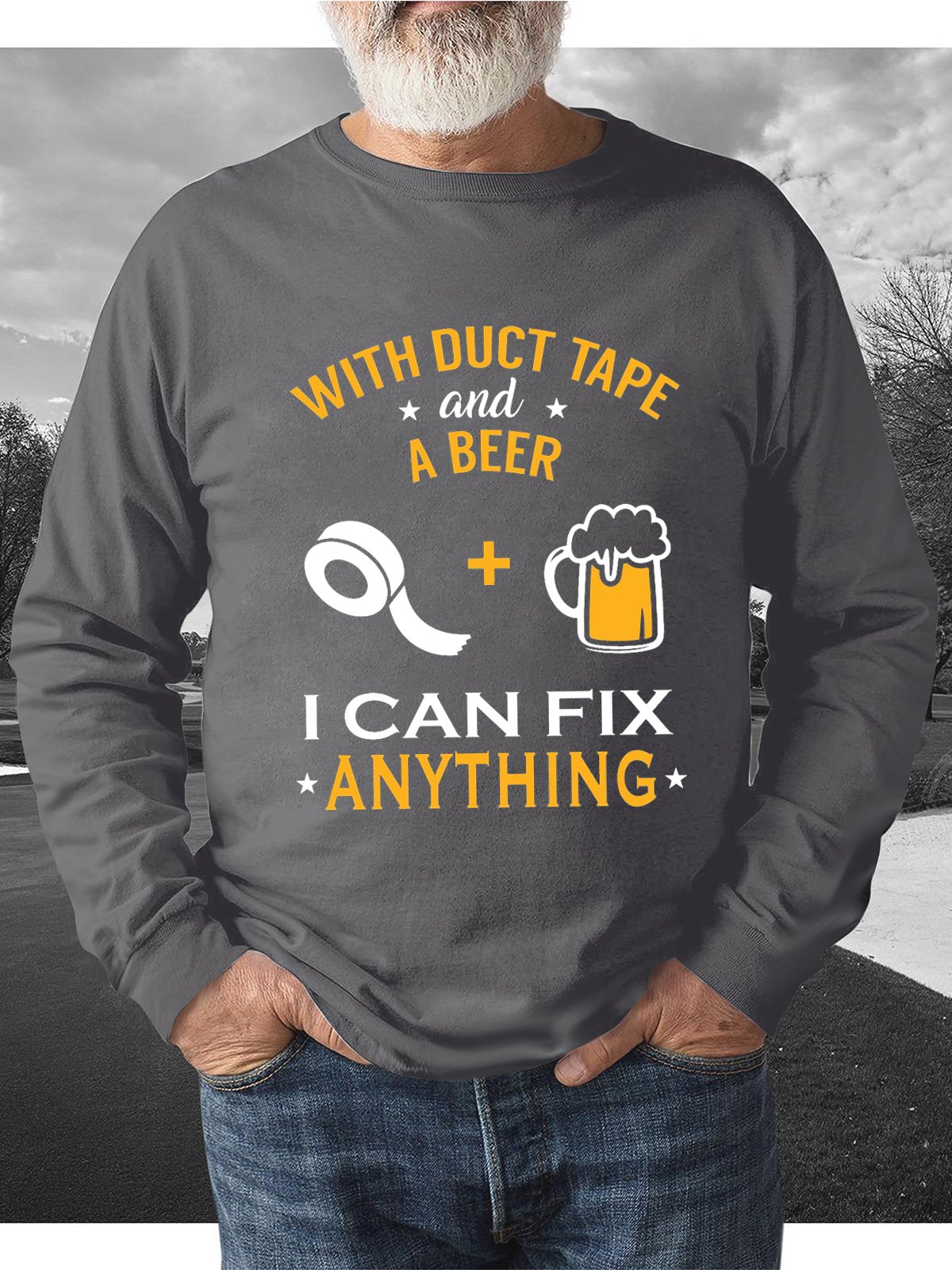 Men You can fix anything With Duct Tape and Beer funny Crew Neck Loose Sweatshirt