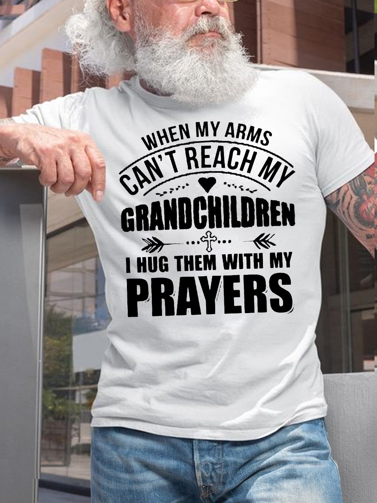Mens When My Arms Can't Reach My Grandchildren Letters Casual T-Shirt
