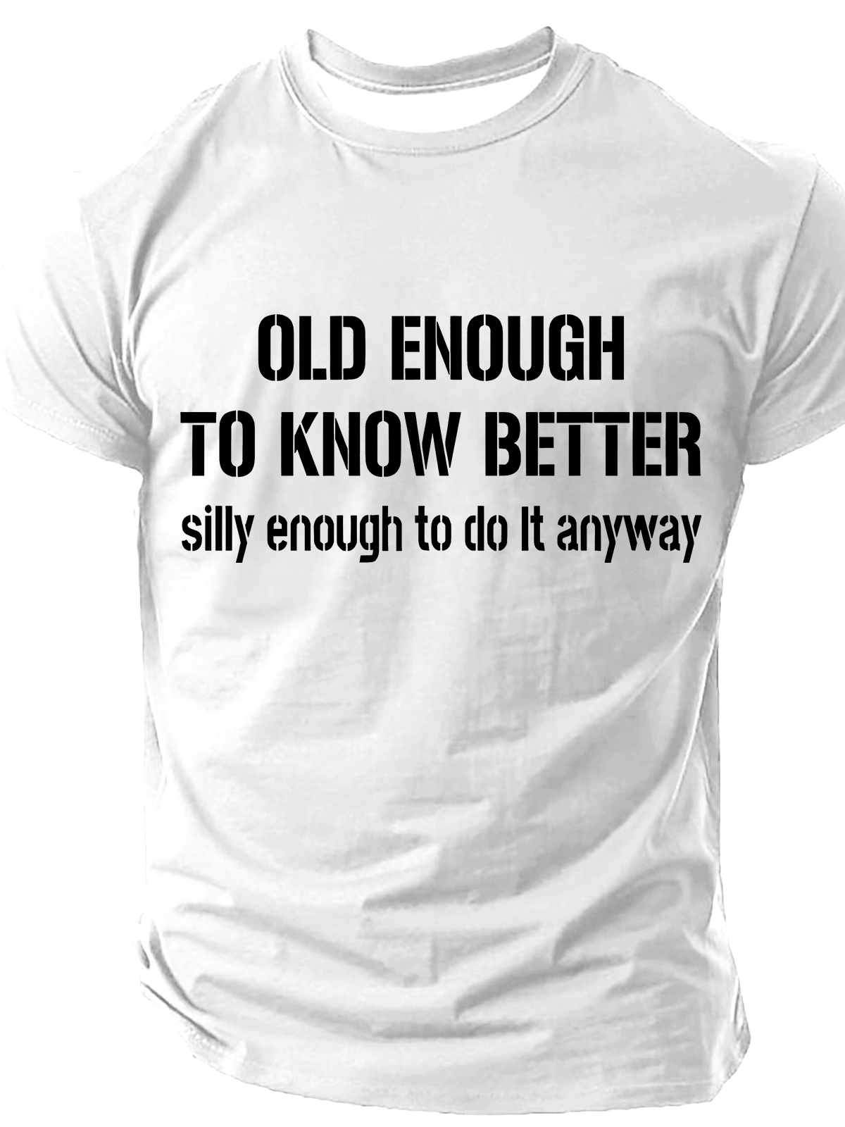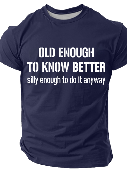 Old Enough To Know Better But Silly Enough To Do It Anyway Cotton T-Shirt
