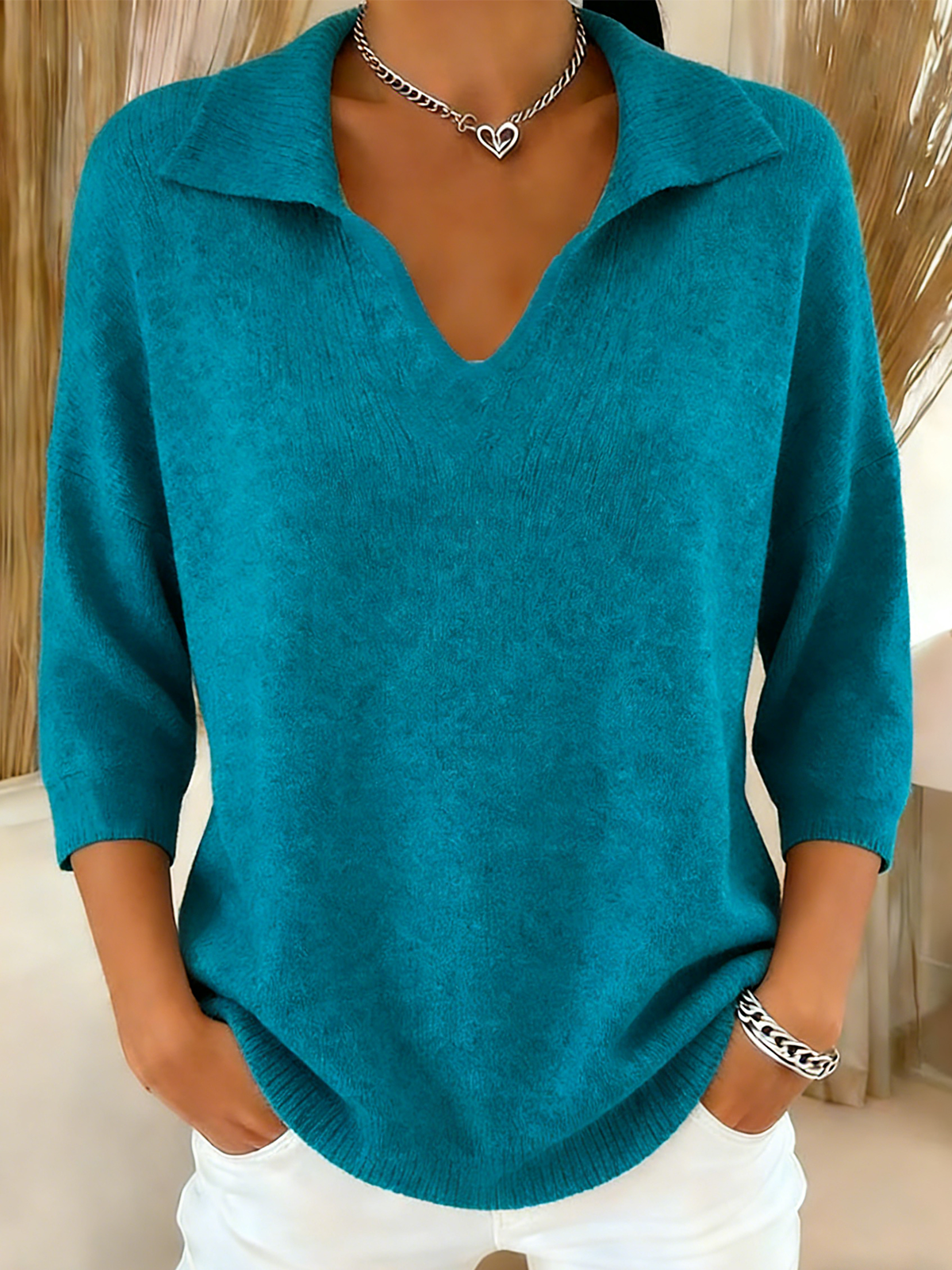 Plain Casual Loose V Neck Sweater