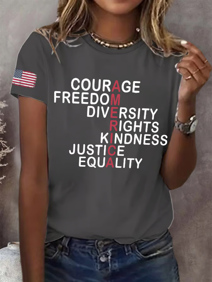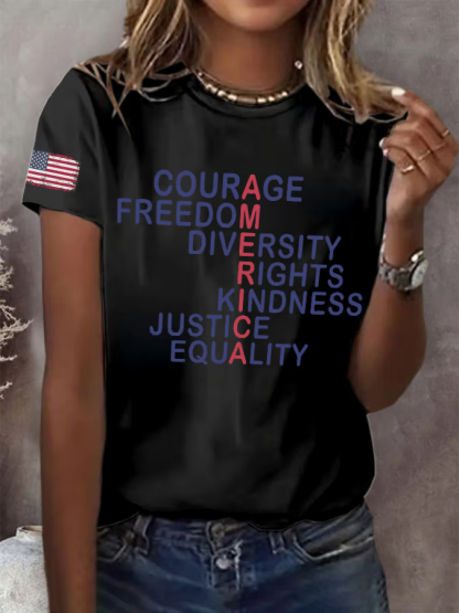 Retro America Courage Freedom Diversity Rights Kindness Justice Equality Print T-Shirt