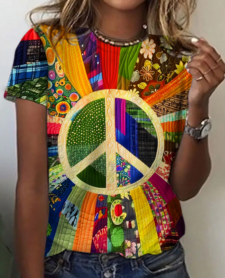 Retro Hippie Flower Peace Sign Love And Peace Cotton T-Shirt