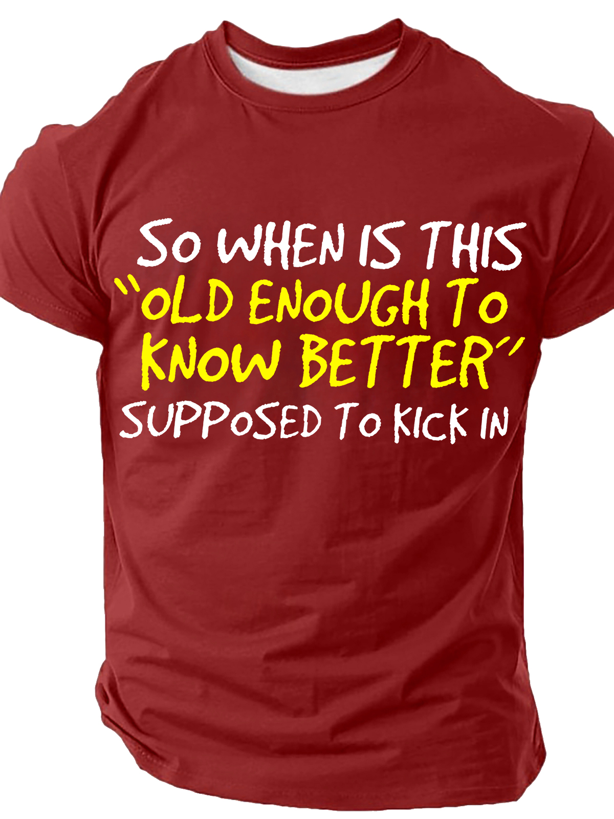 So When Is This Old Enough To Know Better Supposed To Kick In Cotton T-Shirt