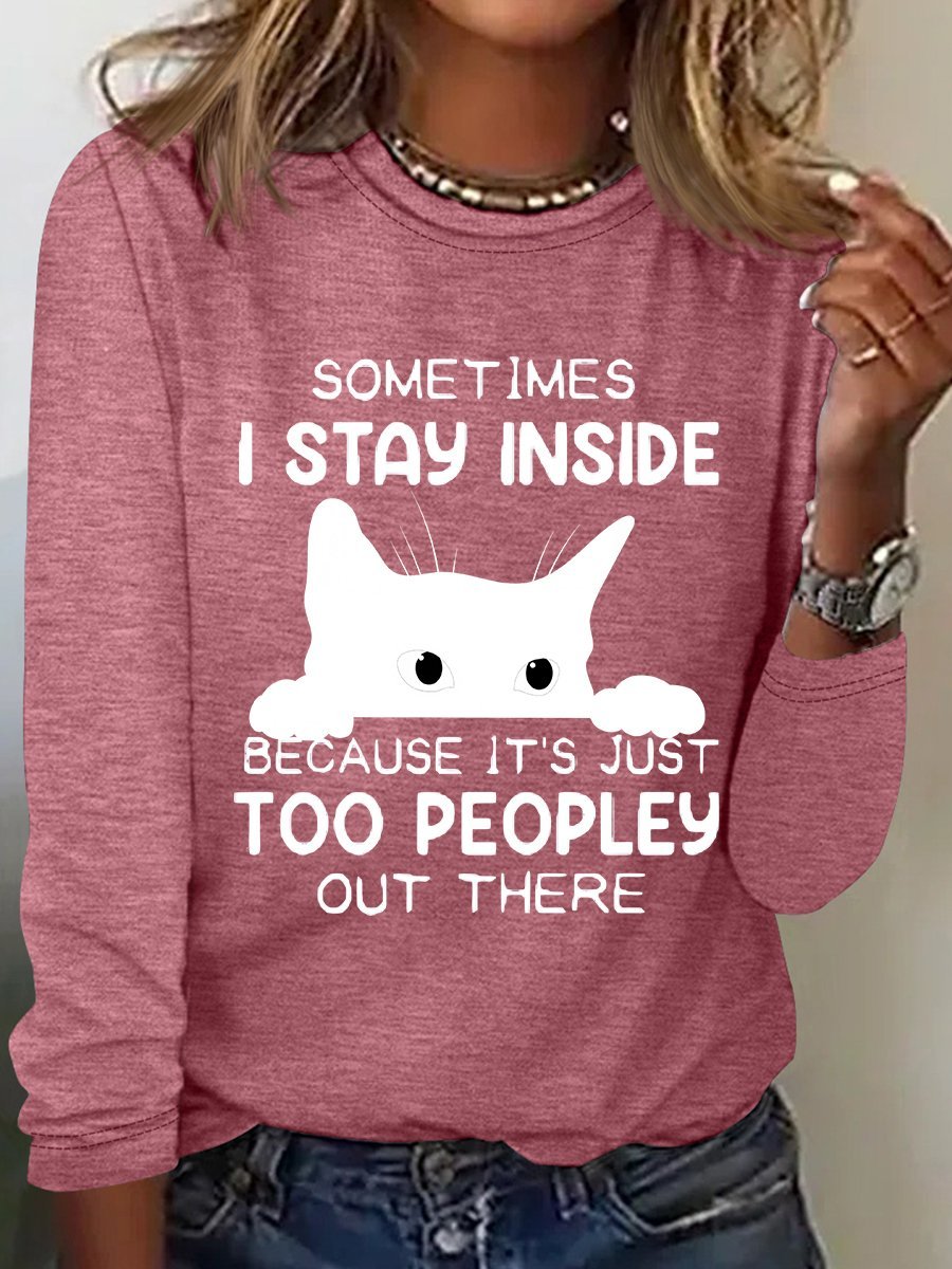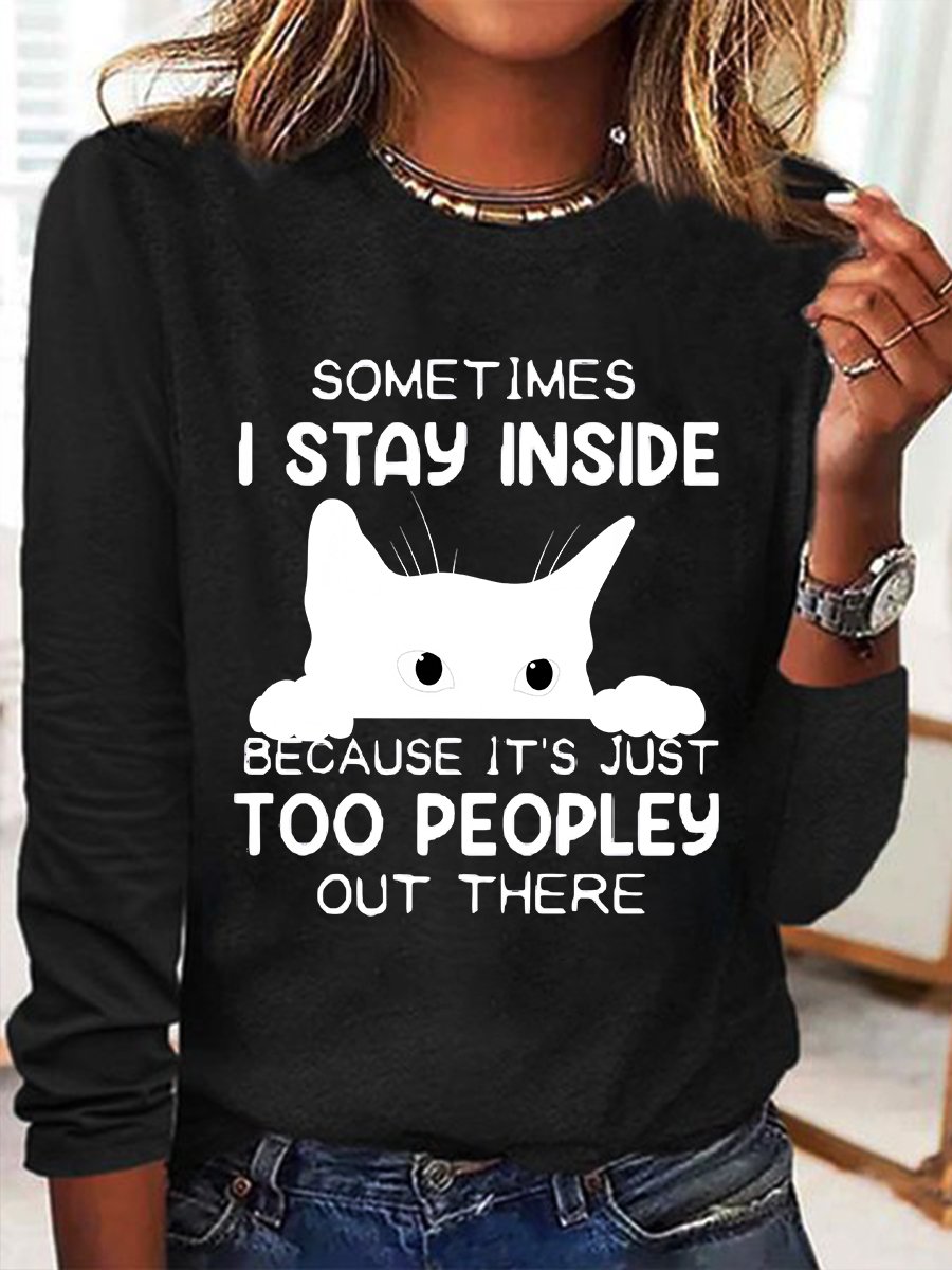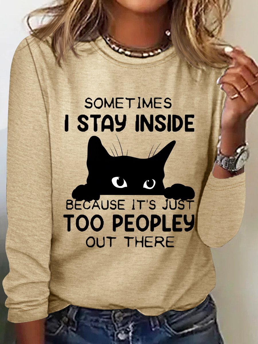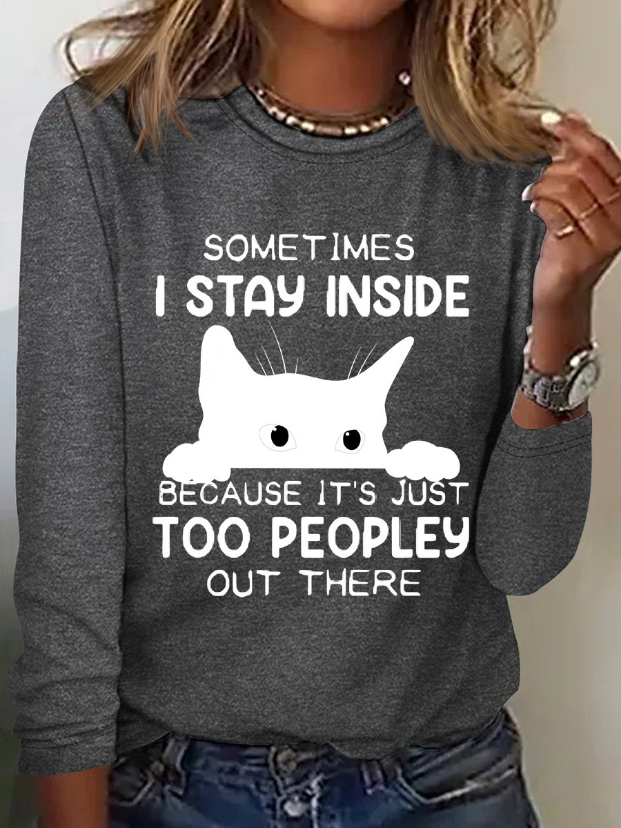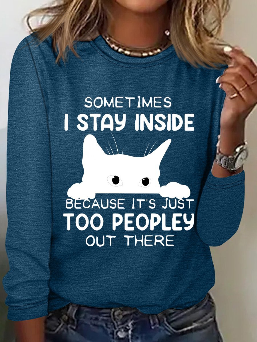 Sometimes I Stay Inside Too Peopley Out There Casual Long Sleeve Shirt