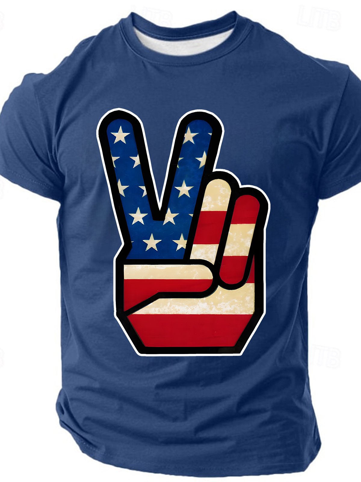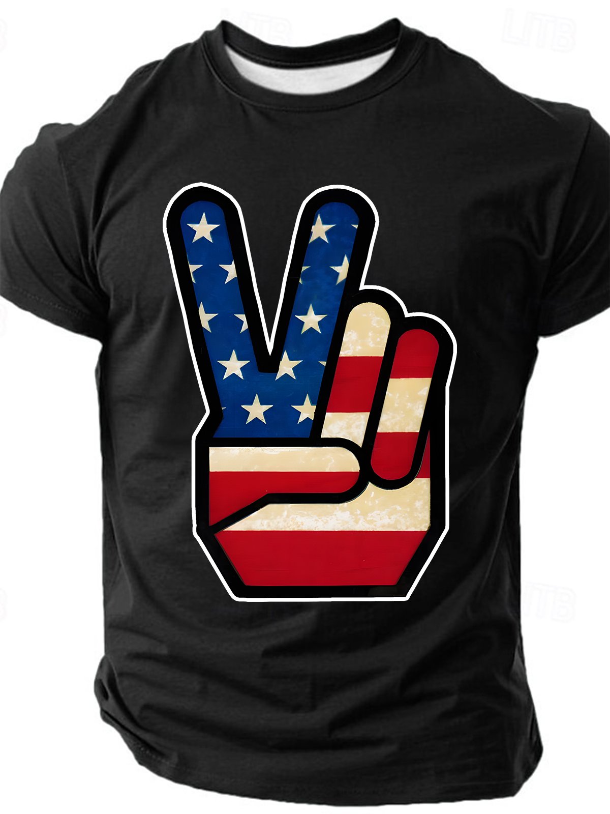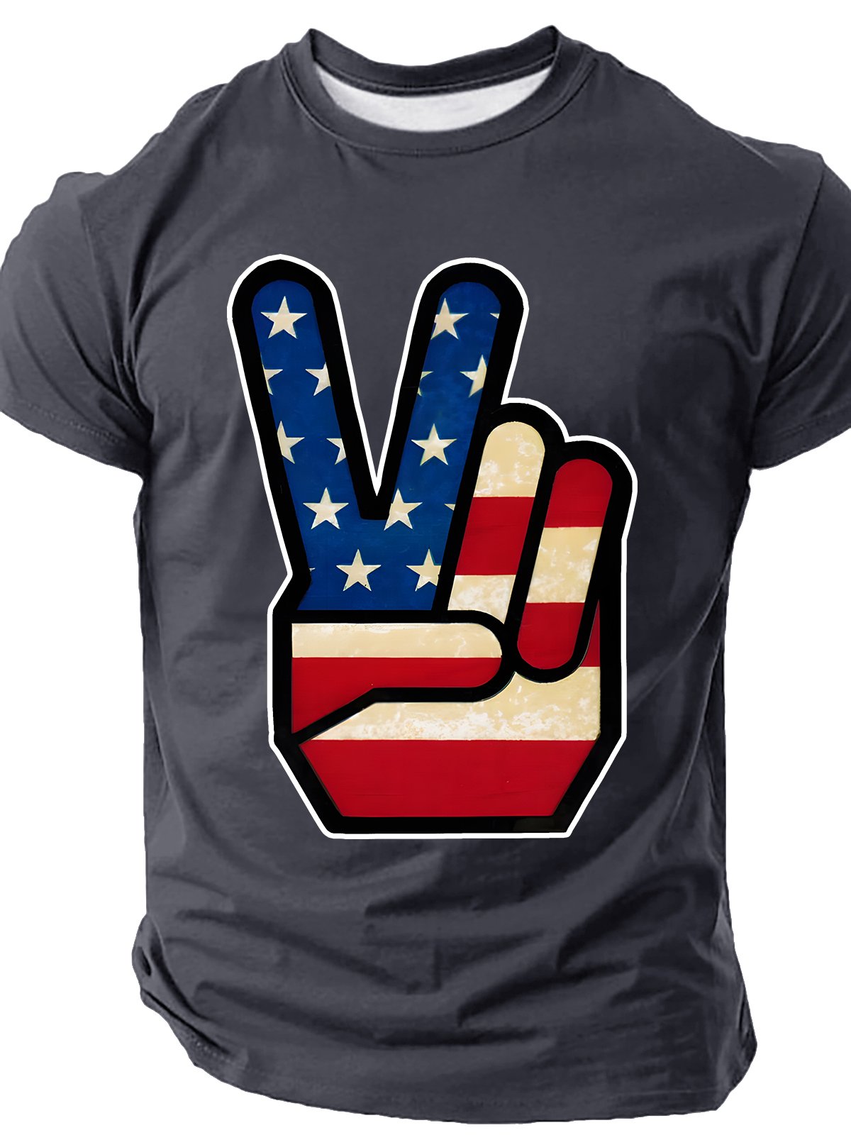 Vintage Peace Sign Fingers American Flag Cotton T-shirt