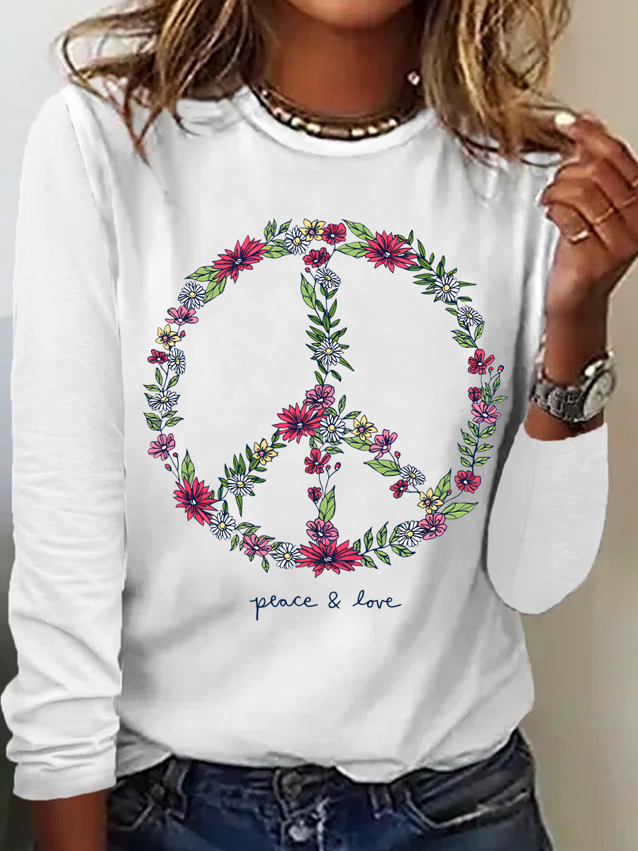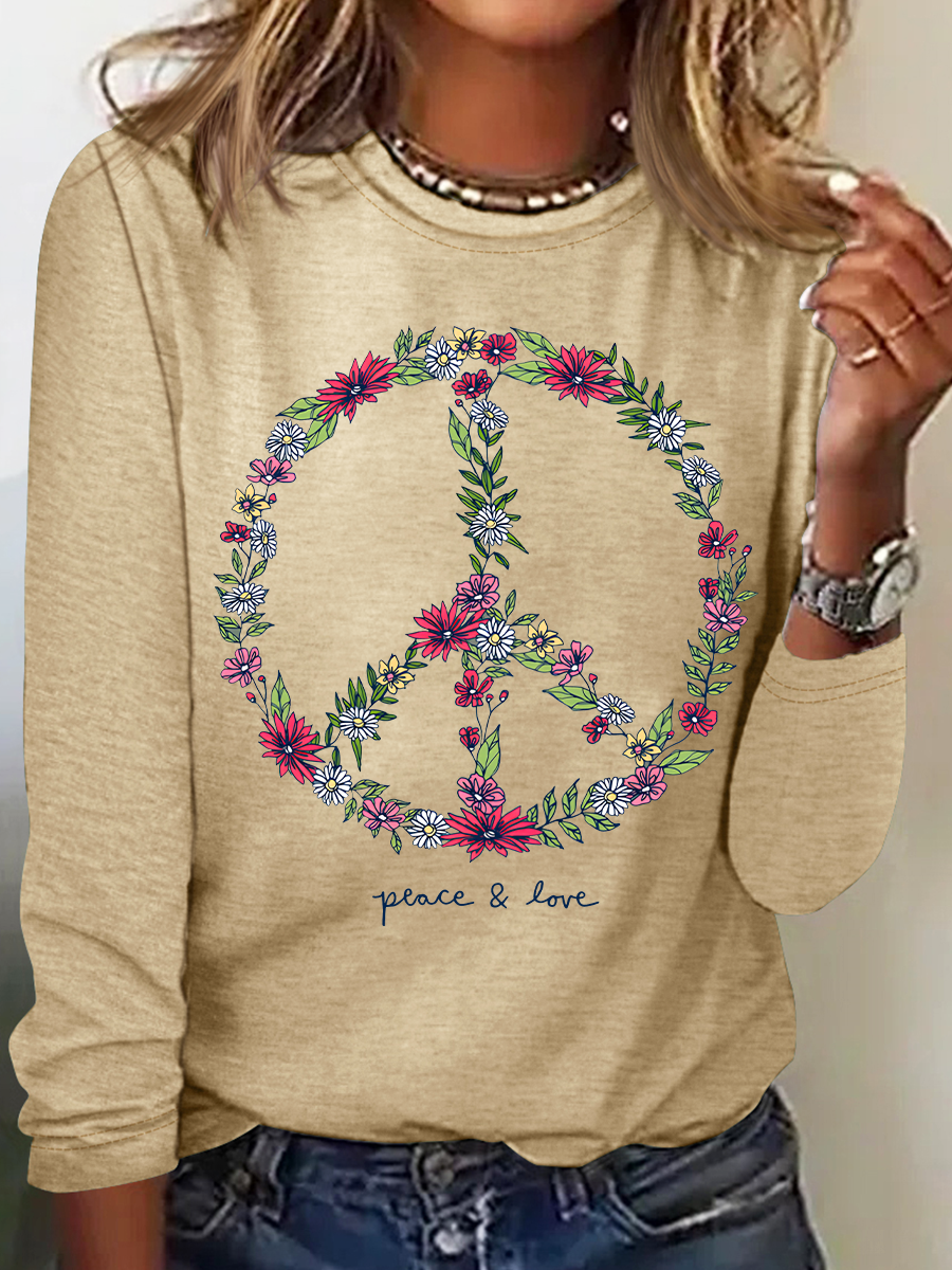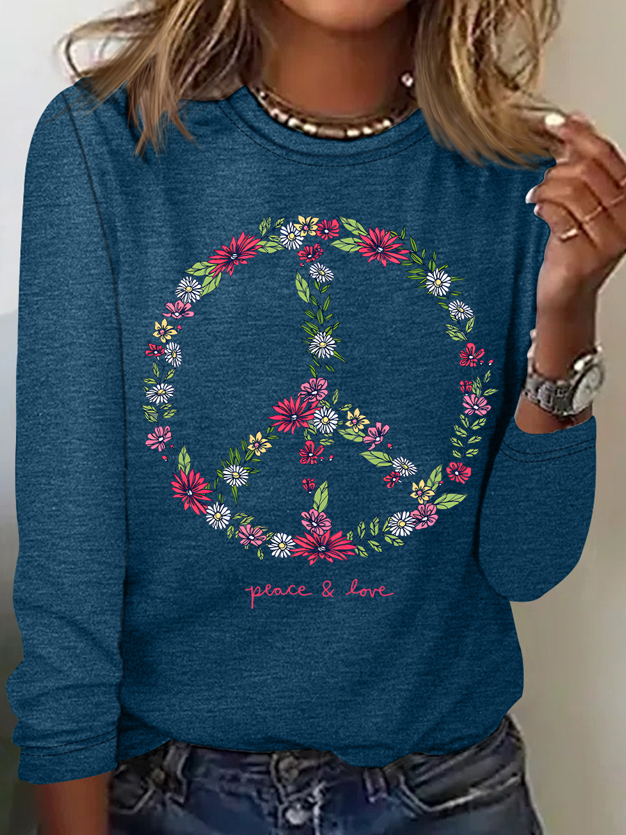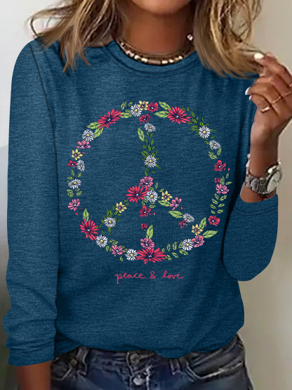 Wildflower Love Peace Sign Casual Long Sleeve Shirt