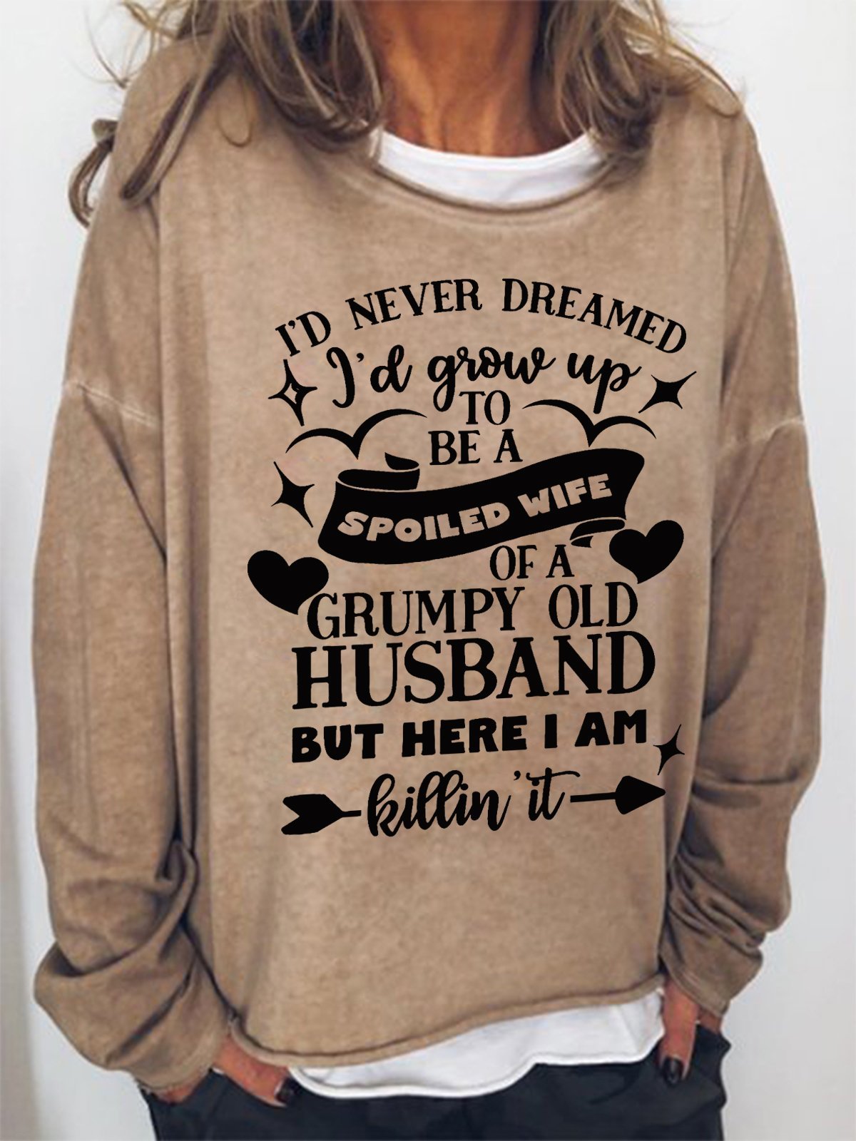 Women Funny Graphic Spoiled Wife Crew Neck Simple Sweatshirt