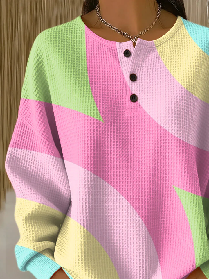 Women's Abstract Print Button-Up Casual Waffle Knit Sweatshirt