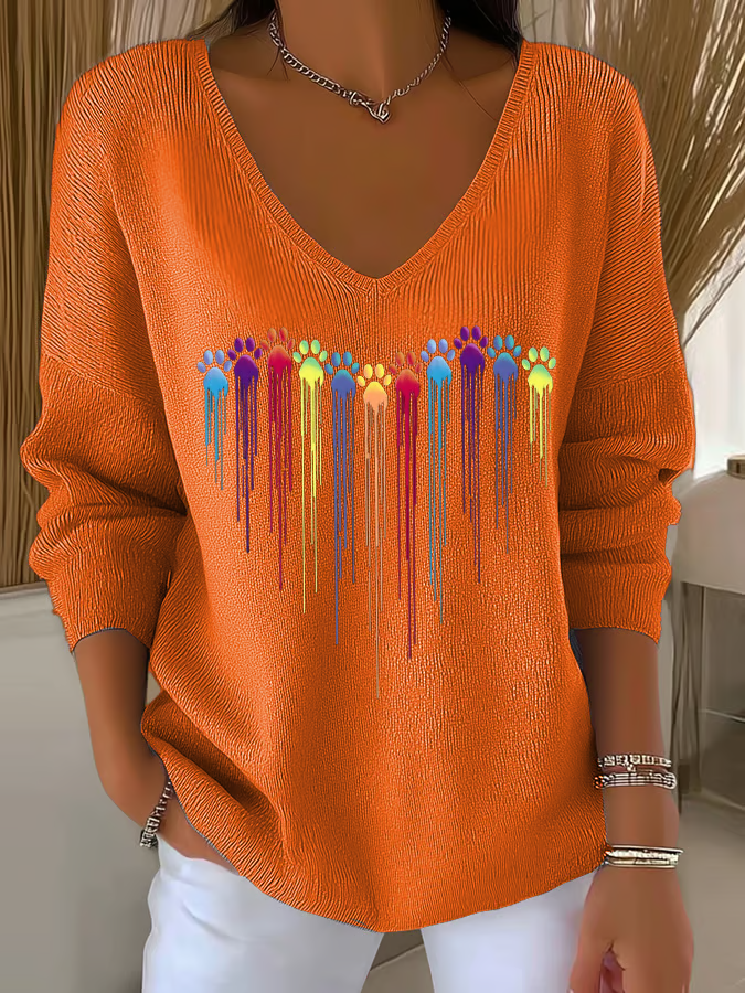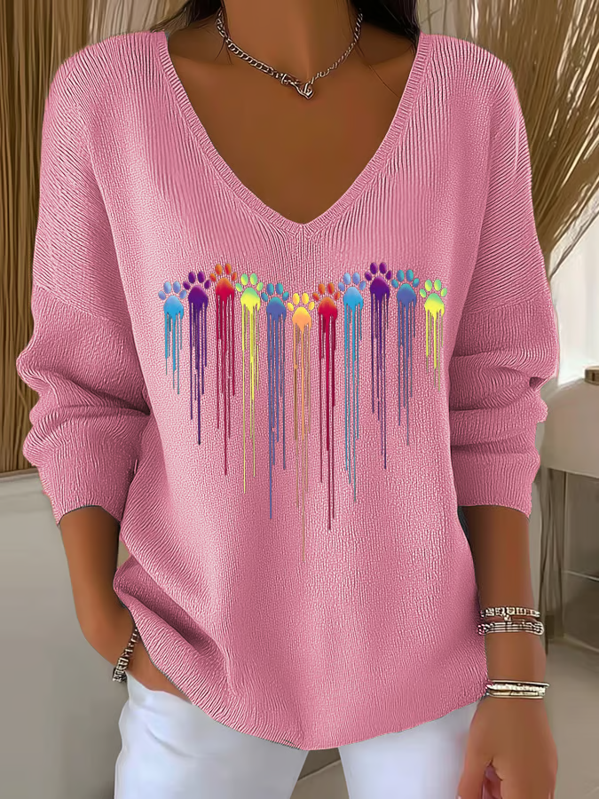 Women's Colorful Dog Heart Paw Print Casual Knitted Top