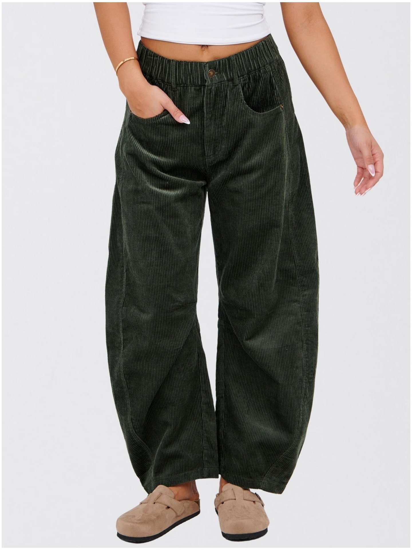 Women's Elastic Waist H-Line Corduroy Pants Daily Going Out Pants Beige Casual Split Joint Plain Spring/Fall Pants