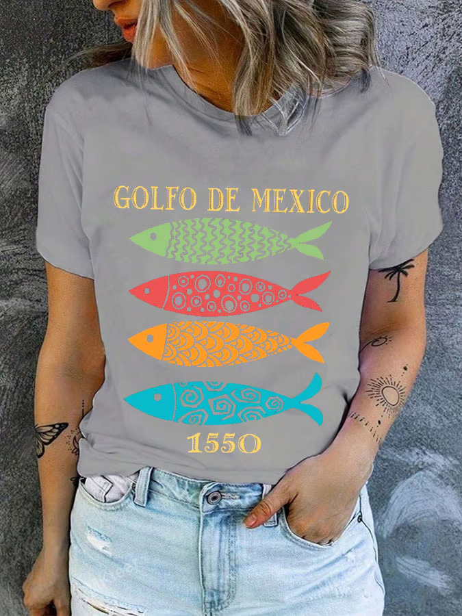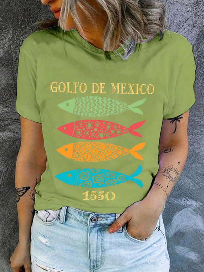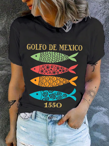 Women's Gulf of Mexico Print Round Neck T-Shirt