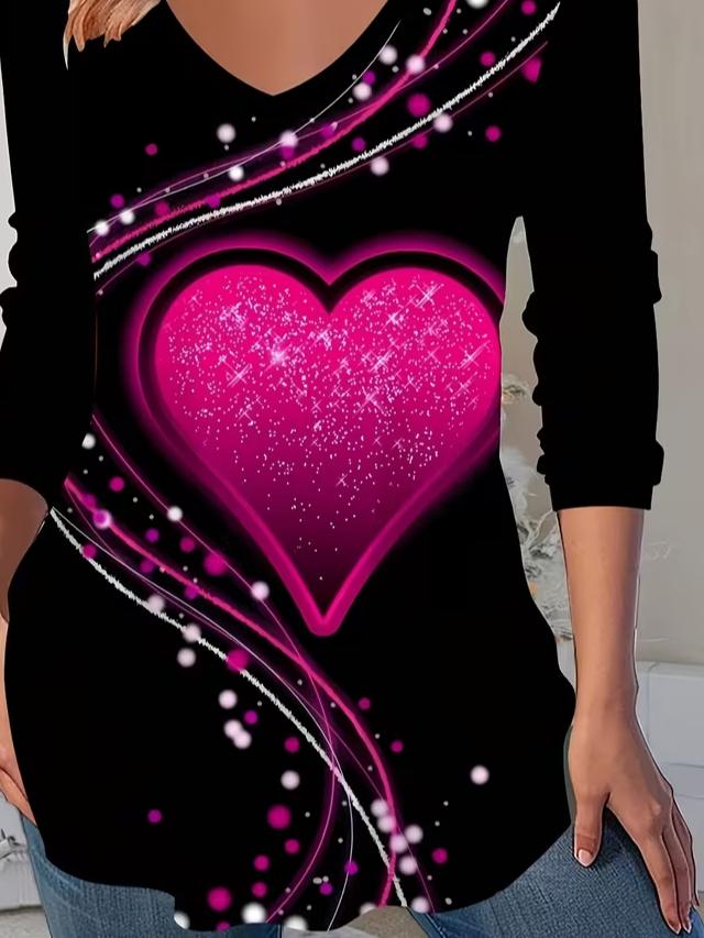 Women's Long Sleeve T-shirt Spring/Fall Black Heart/Cordate Printing Jersey V Neck Daily Going Out Casual Top