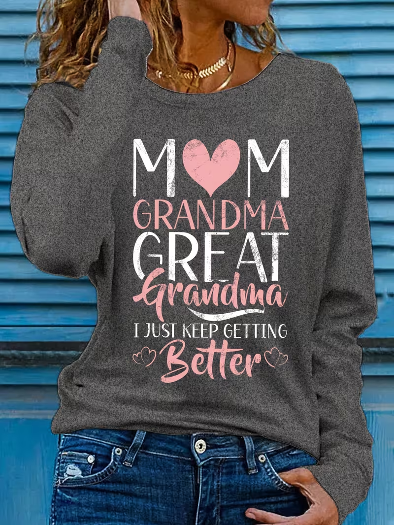 Women's Long Sleeve T-shirt Spring/Fall Gray Text Letters Printing Jersey Crew Neck Daily Going Out Casual Top