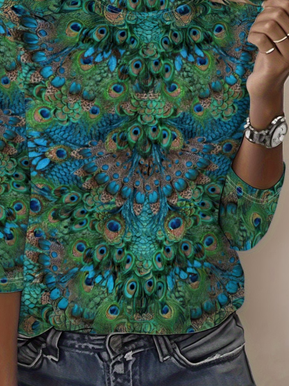 Women's Long Sleeve T-shirt Spring/Fall Green Abstract Printing Jersey Crew Neck Daily Going Out Casual Top