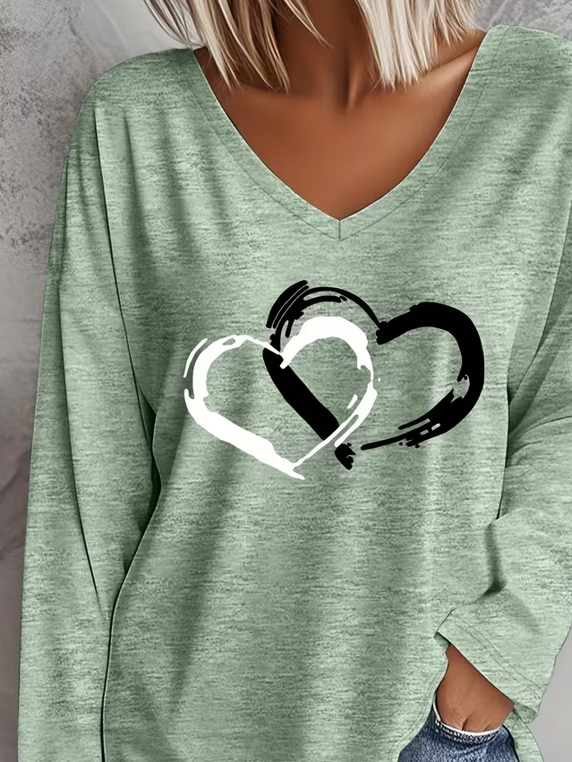 Women's Long Sleeve T-shirt Spring/Fall Green Heart/Cordate Printing Jersey V Neck Daily Going Out Casual Top