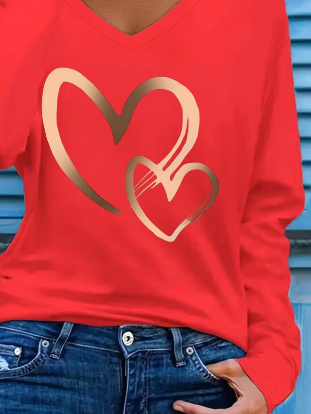 Women's Long Sleeve T-shirt Spring/Fall Red Heart/Cordate Printing Jersey V Neck Daily Going Out Casual Top
